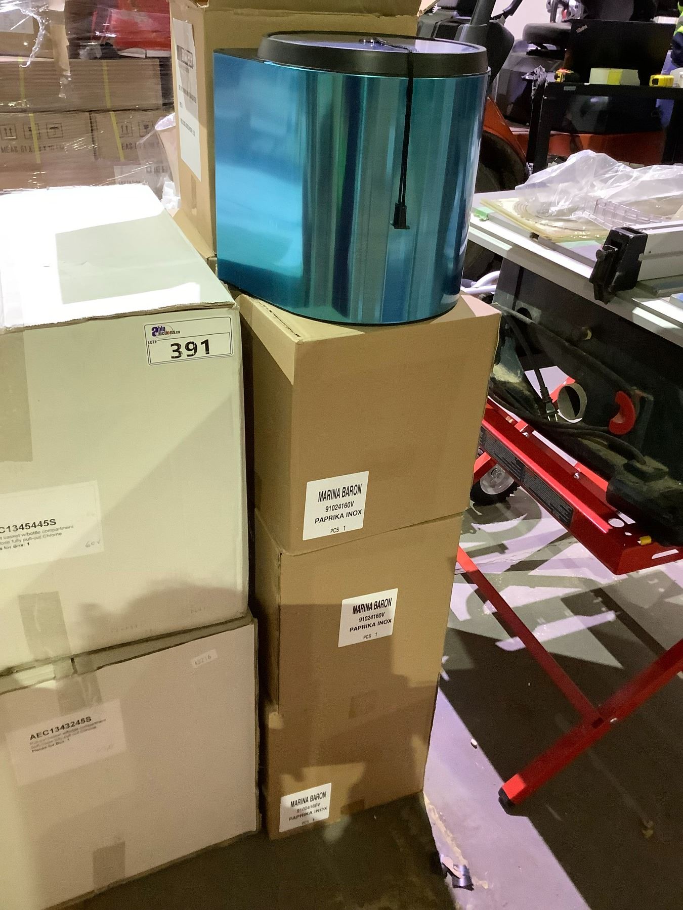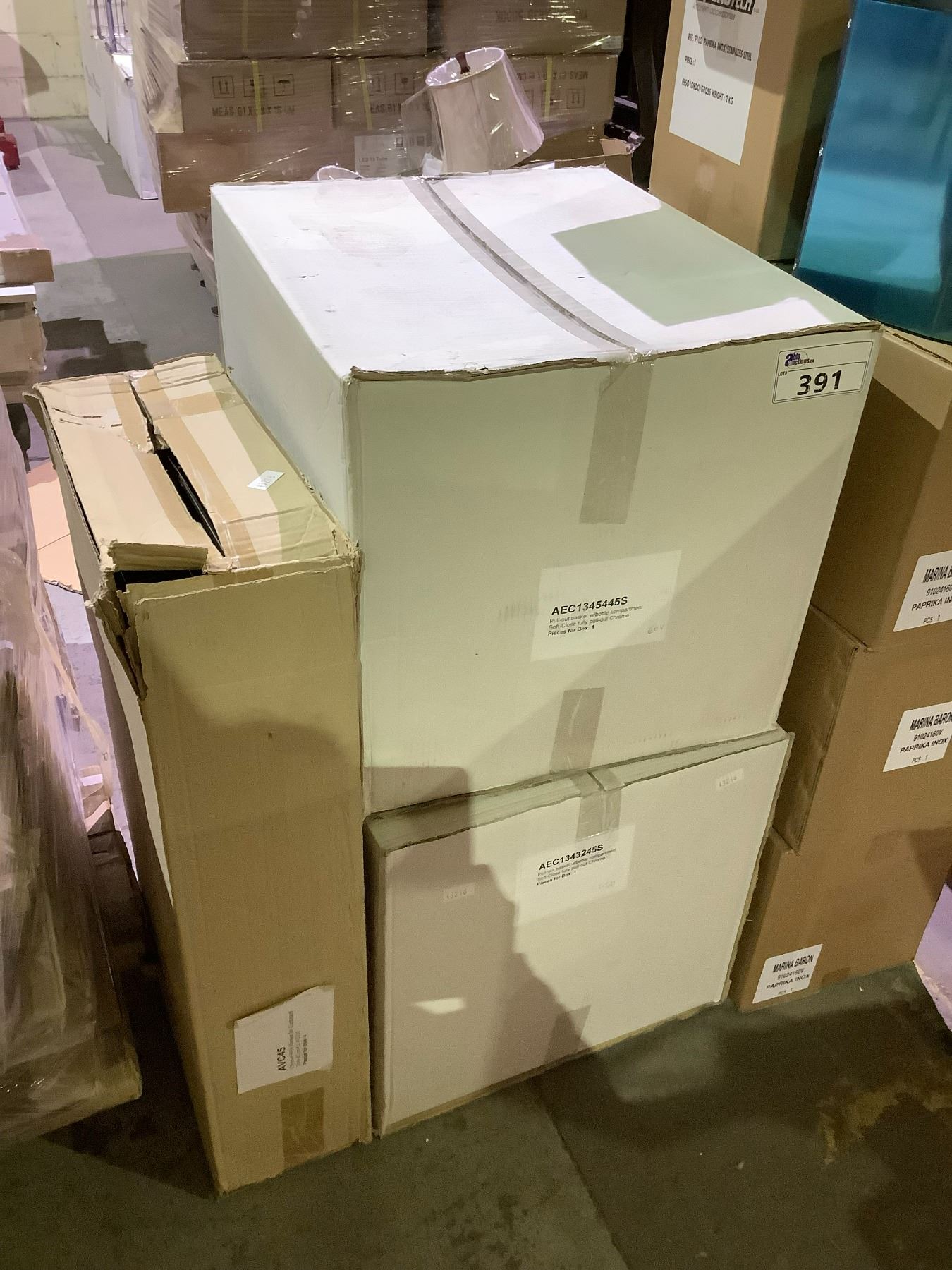 10- ASSORTED CABINET ITEMS INCLUDING: PAPRIKA INOX AEC13455445S PULLOUT BASKETS AND AVC45 CHROME WIRE BASKET FOR CUT BOARD