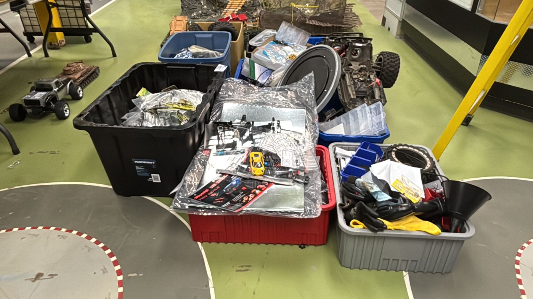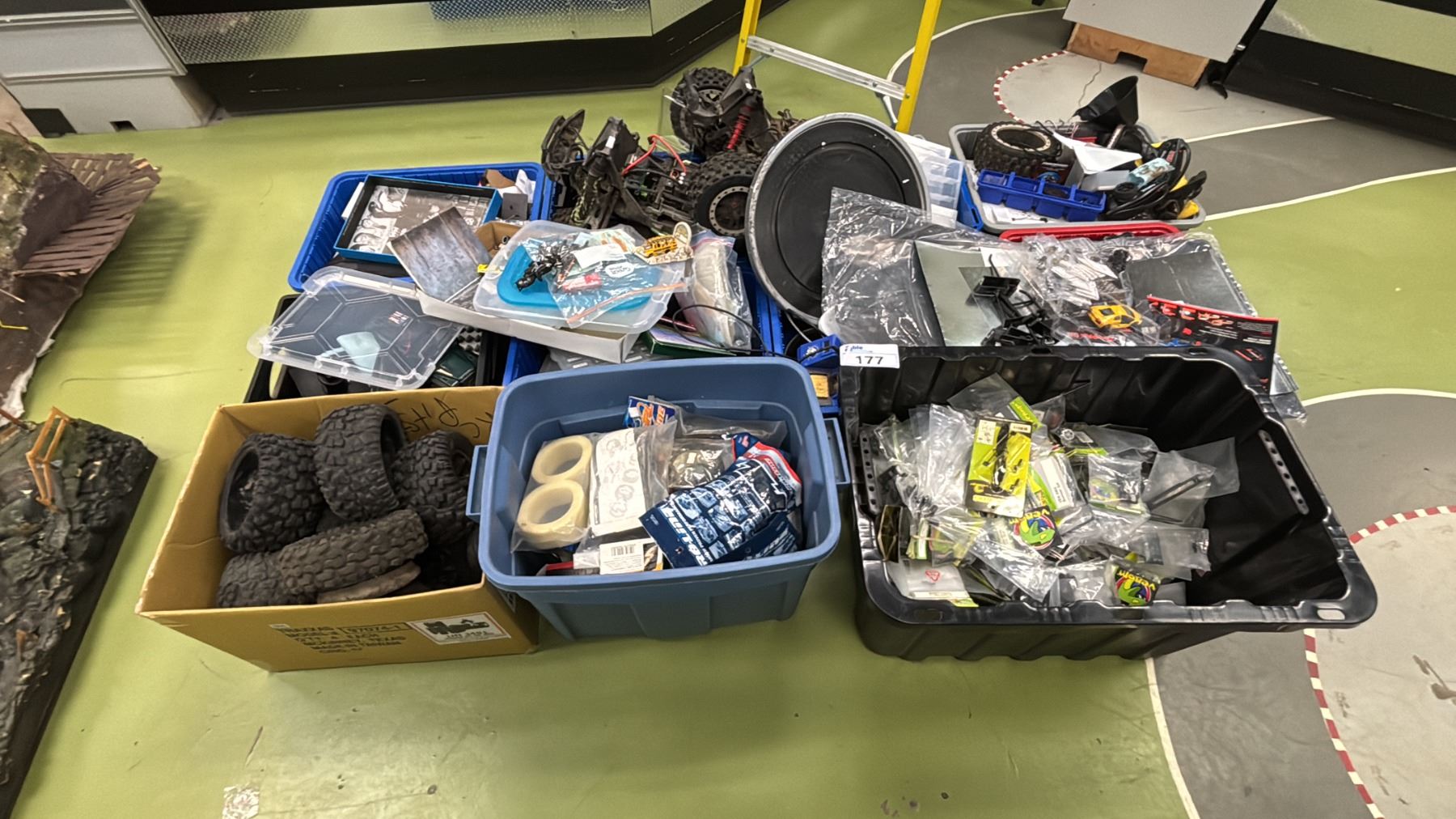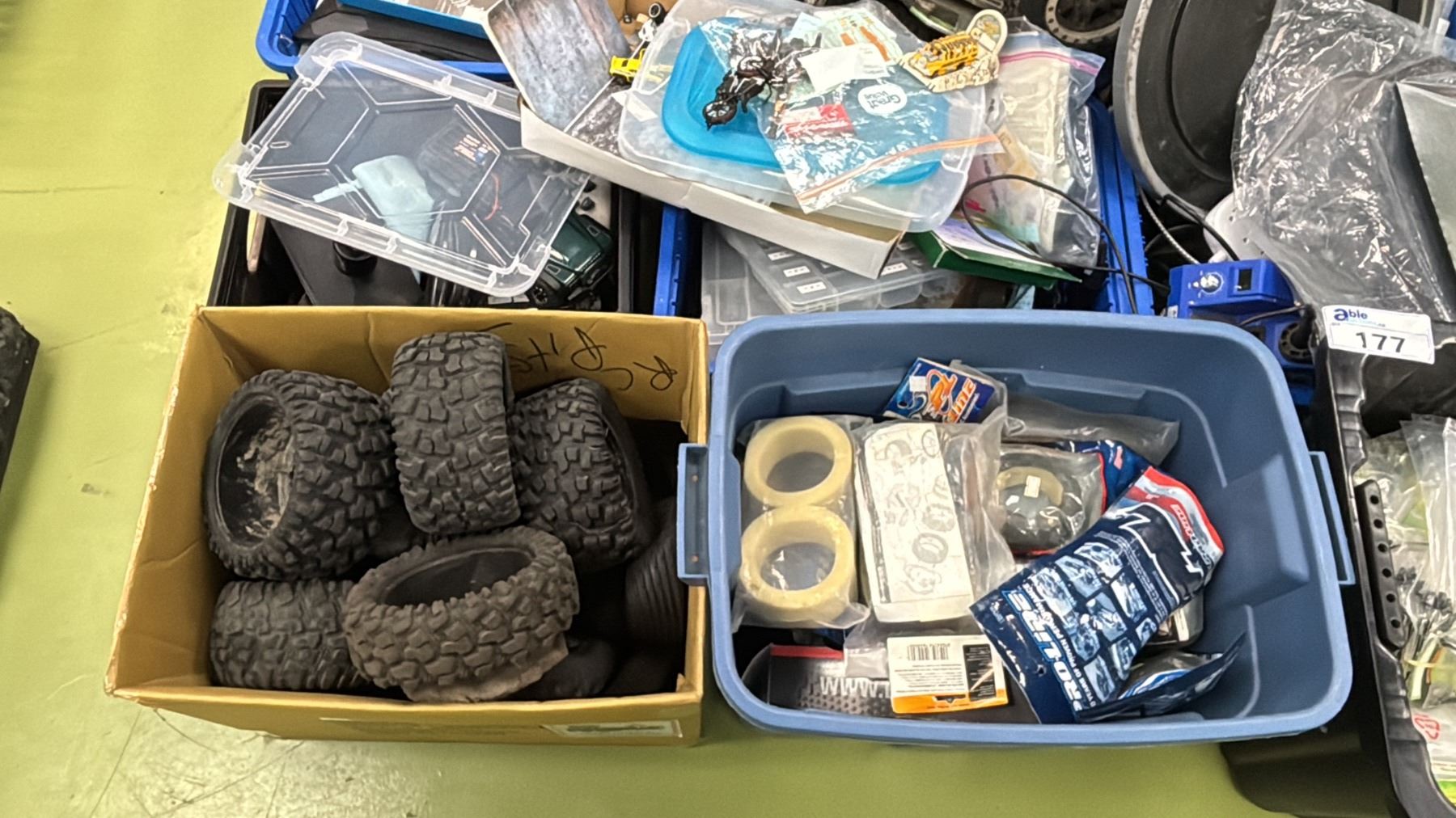 (10) BINS OF ASSORTED R/C & MODEL CAR ACCESSORIES & PARTS