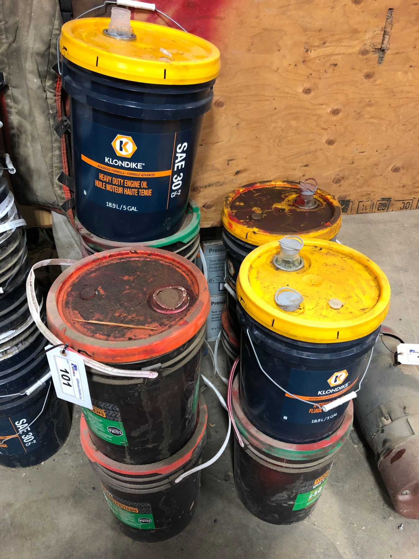 10 BUCKETS OF ASSORTED ENGINE OIL, HYDRAULIC FLUID & MORE - USED