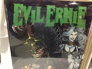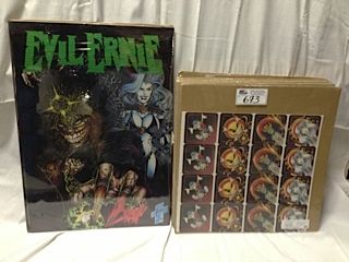 10 EVIL ERNIE UNCUT SHEETS OF COASTERS & 2 EVIL ERNIE CHROMIUM POSTERS