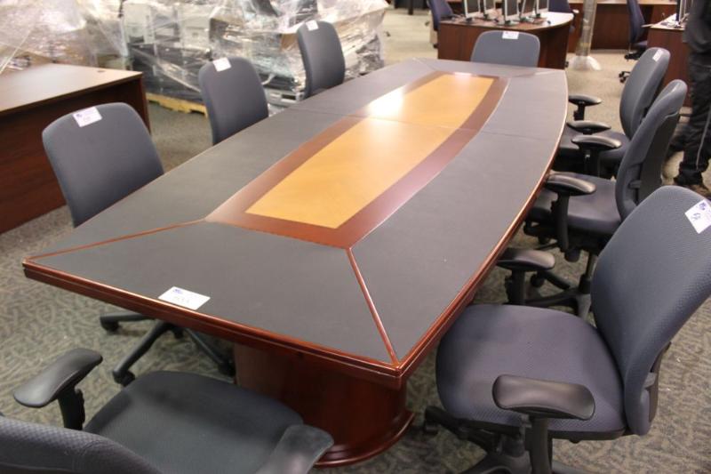 10' Leather With Cherry And Mahogany Inlay Boardroom Table