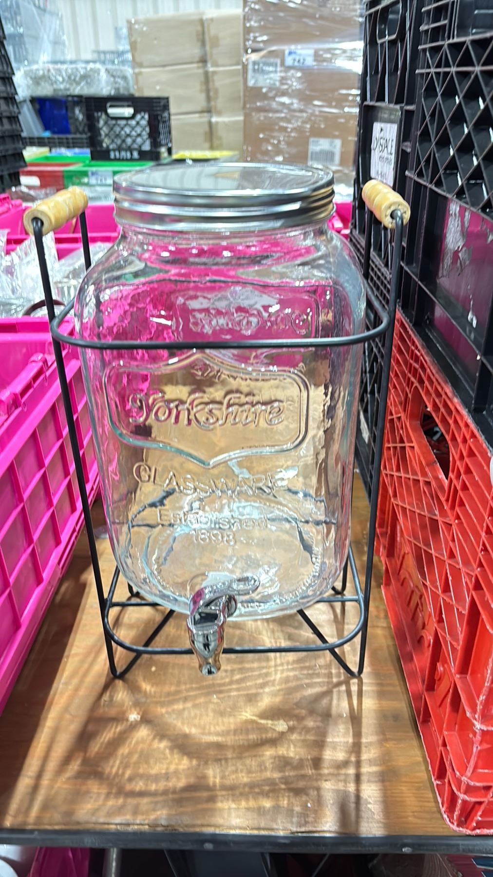 10 MASON JAR DRINK DISPENSERS WITH STANDS AND SPOUTS *CRATES INCLUDED*