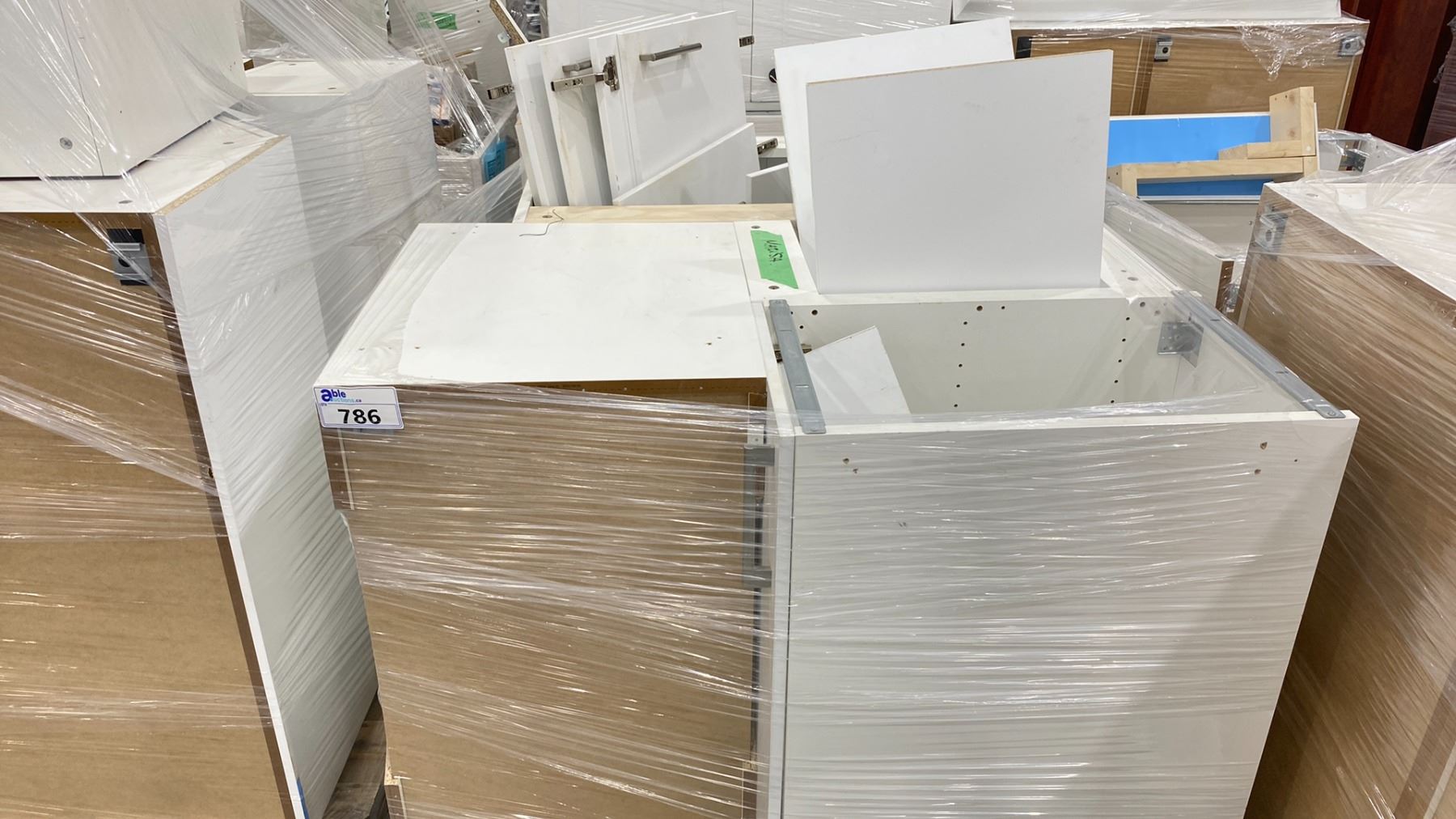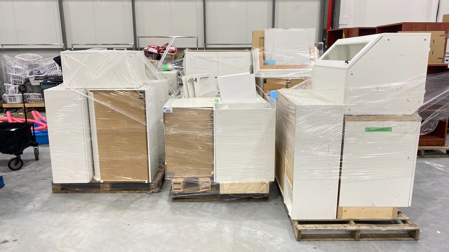 (10) PALLETS OF WHITE KITCHEN CABINETRY SET (MUST TAKE ALL)