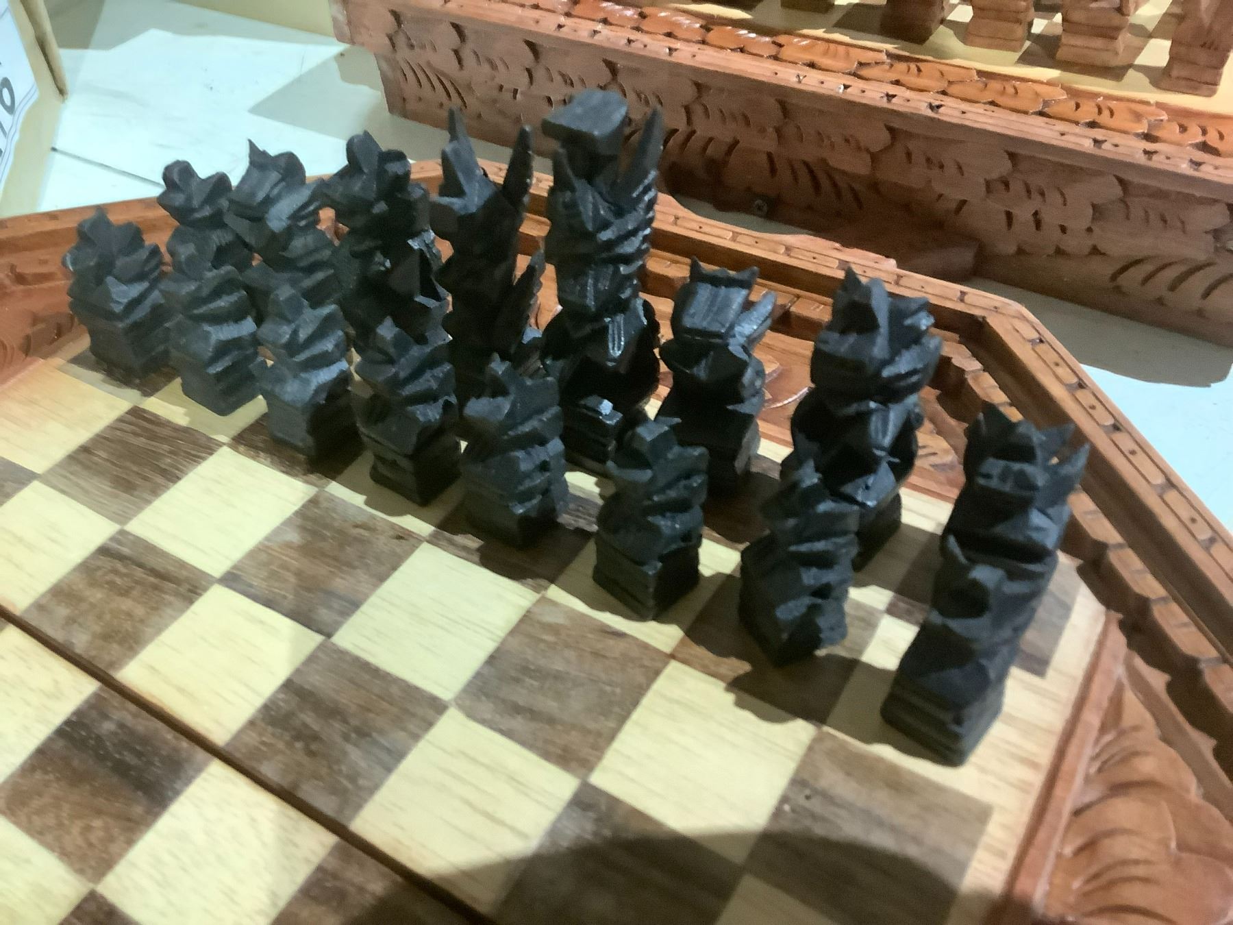 100% HAND-CARVED CHESS SET IMPORTED FROM BALI 13-1/2X13-1/2"