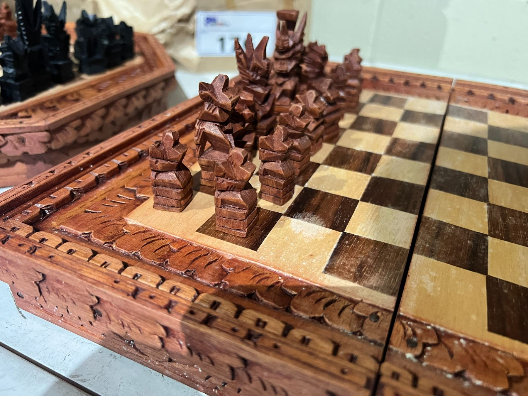 100% HAND-CARVED CHESS SET IMPORTED FROM BALI 13X13"