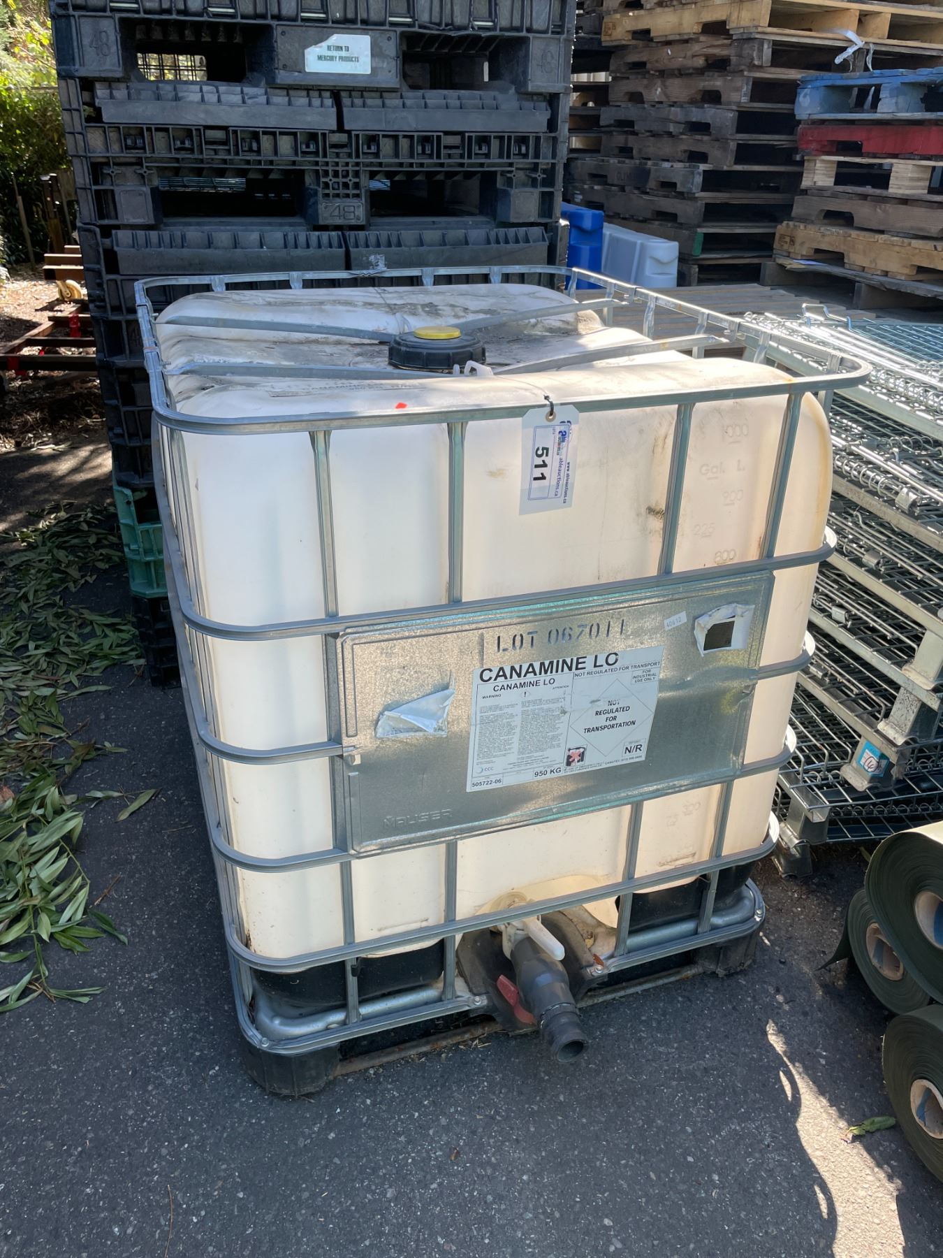1000L LIQUID STORAGE TANK WITH VALVE, METAL CAGE AND PALLET