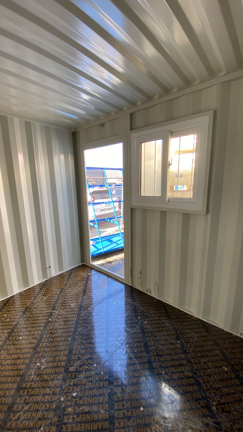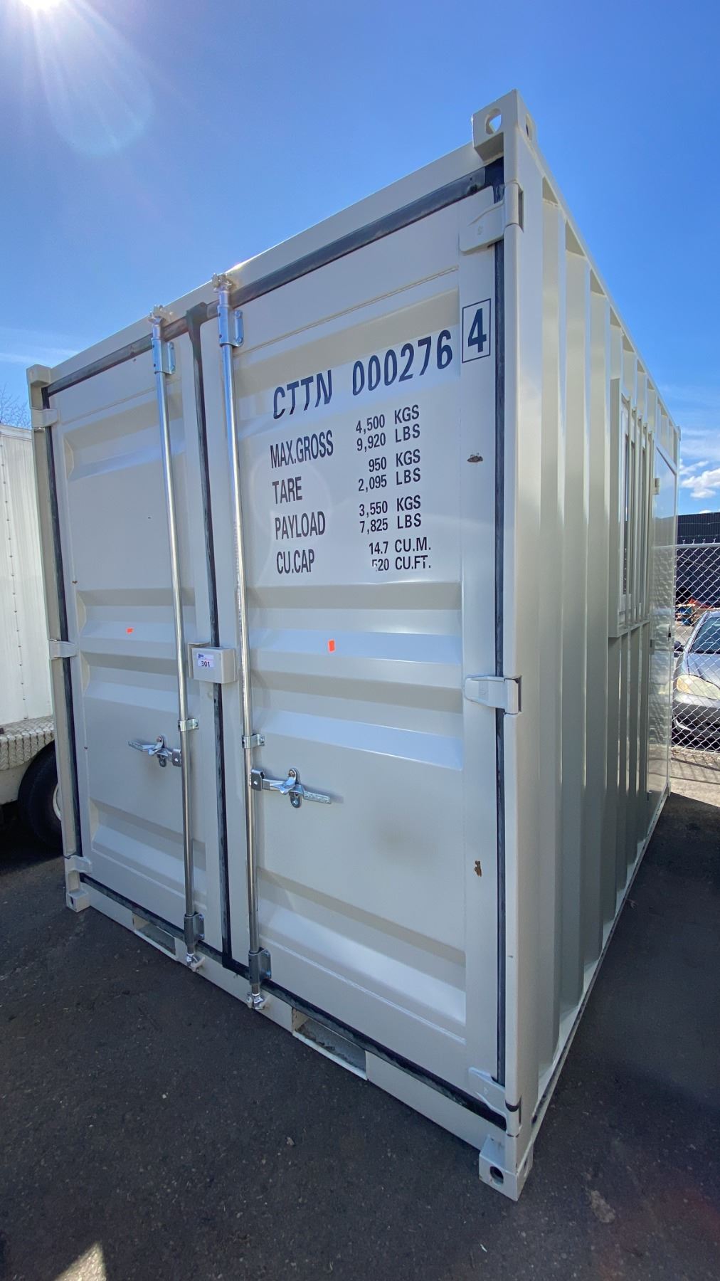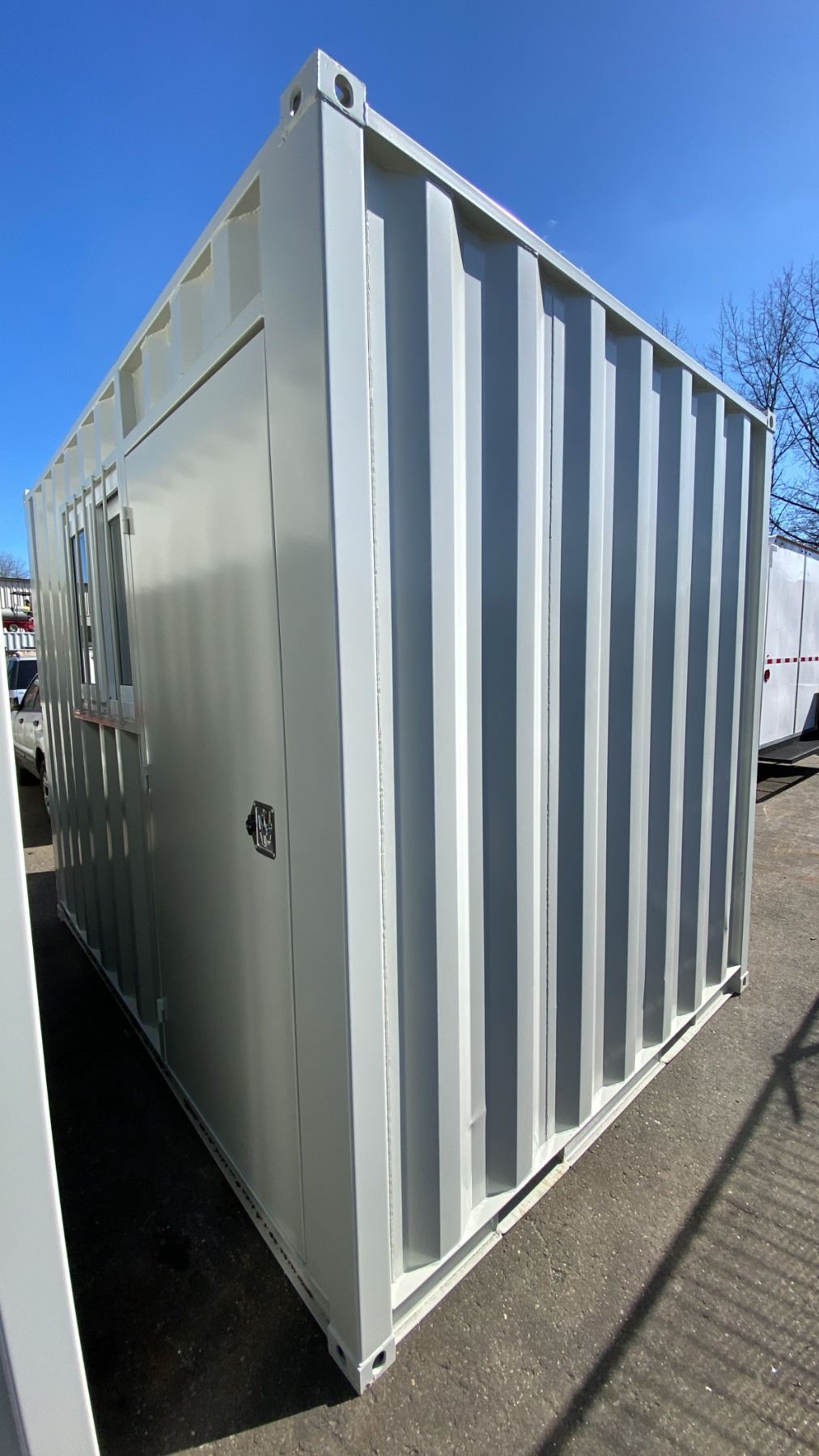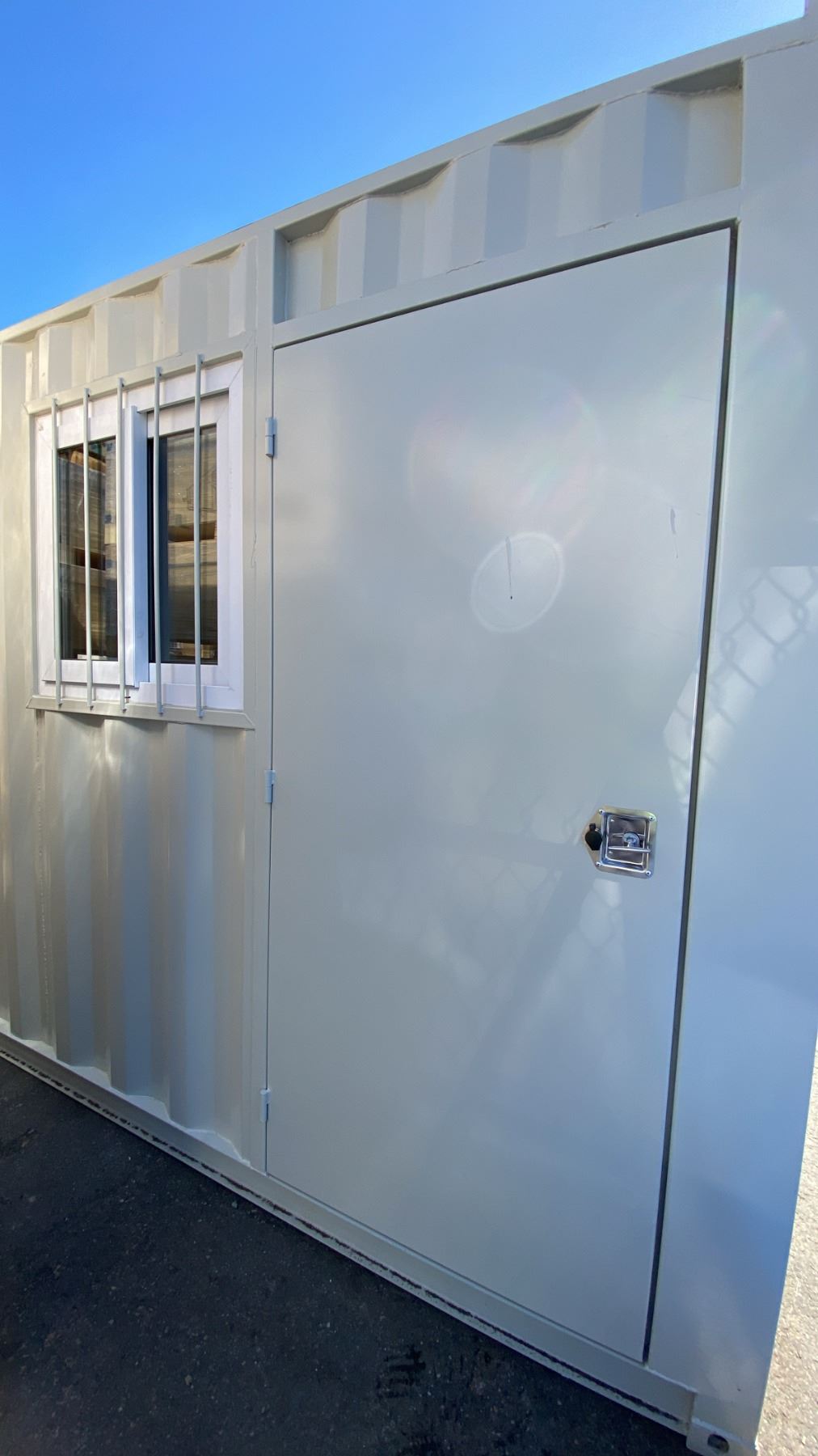 10FT GREY OFFICE STORAGE SHIPPING CONTAINER WITH DUAL SWING REAR DOORS, CAMS, SIDE MAN DOOR & WINDOW APPROX 10'L X 7.5'W X 8' 3"H *LAST DAY PICKUP*
