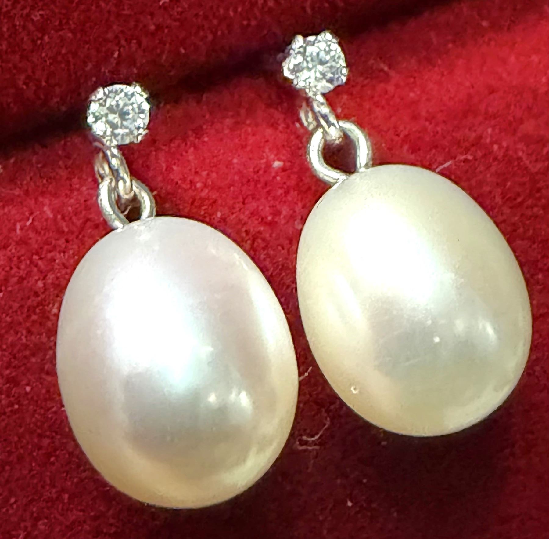 10K(1.08G), F.W.PEARL & LAB DIAMOND (0.05CT) EARRINGS, SUGGESTED RETAIL VALUE $400