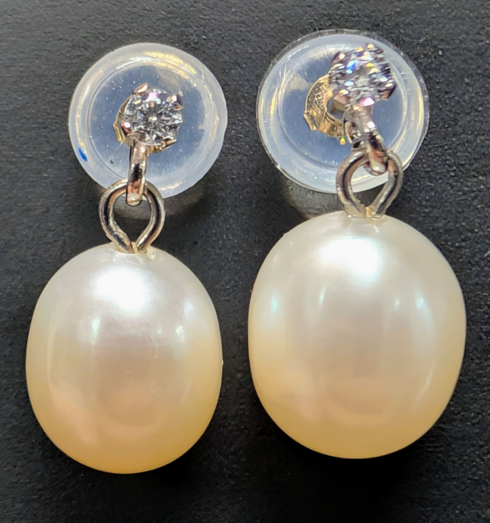 10K(1.08G), F.W.PEARL & LAB DIAMOND (0.05CT) EARRINGS, SUGGESTED RETAIL VALUE $400