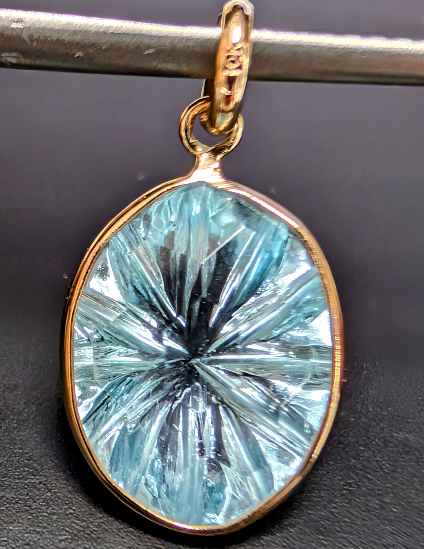 10K(1.2G), CARVED BLUE TOPAZ (APP 5CT) PENDANT, SUGGESTED RETAIL VALUE $600