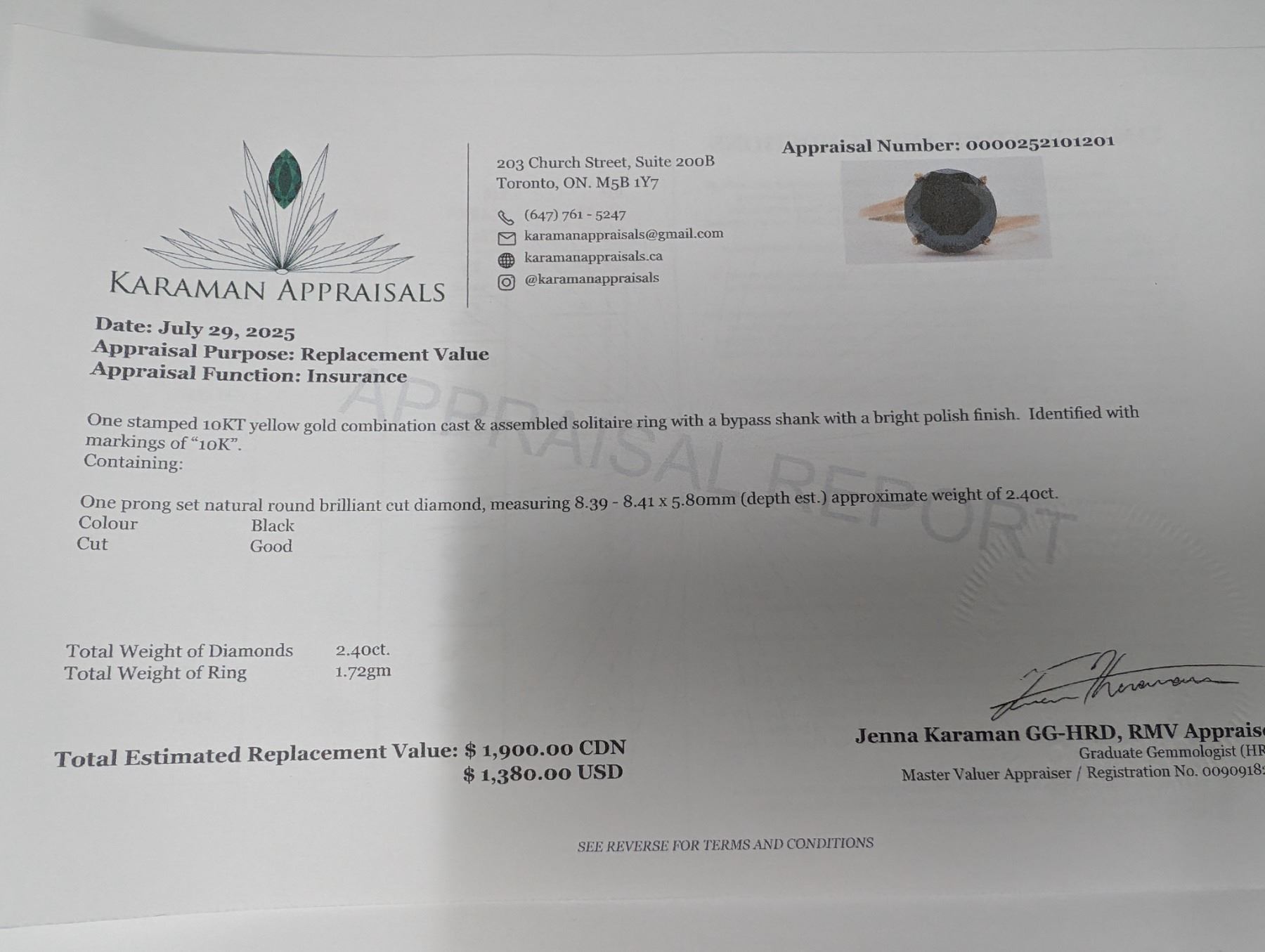 10K (1.72G) BLACK DIAMOND (2.4CT) RING (SIZE 6.5) APPRAISED INSURANCE VALUE $1900