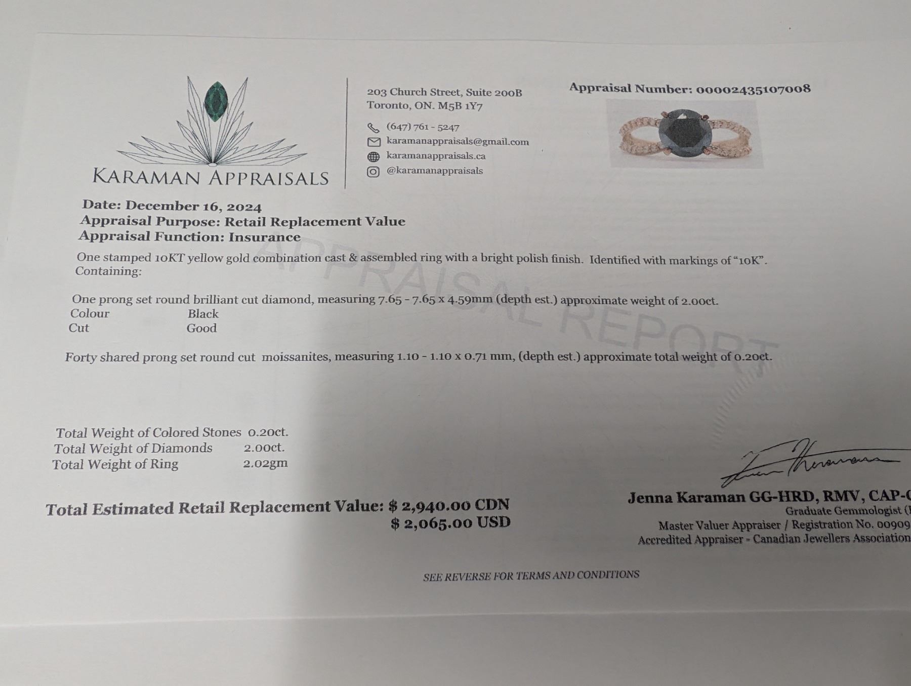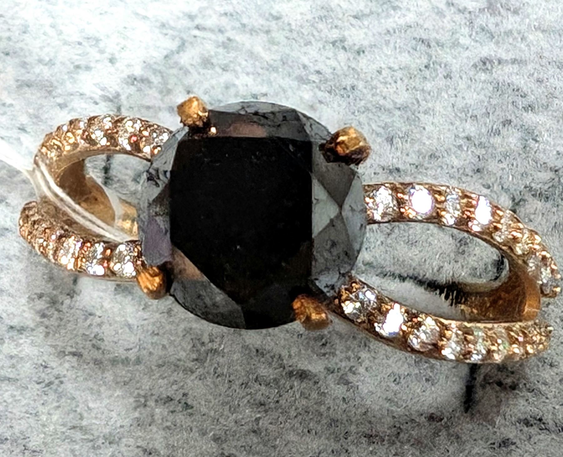 10K (2.02G) BLACK DIAMOND (2CT) MOISSANITE (0.2CT) RING (SIZE 6.75) APPRAISED INSURANCE VALUE $2940