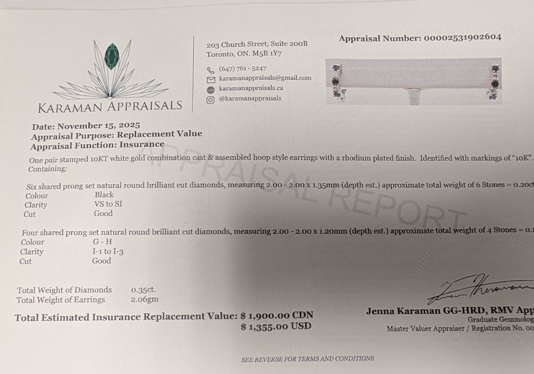 10K(2.06G), NATURAL DIAMOND (0.35CT)EARRING, APPRAISED INSURANCE VALUE $1900