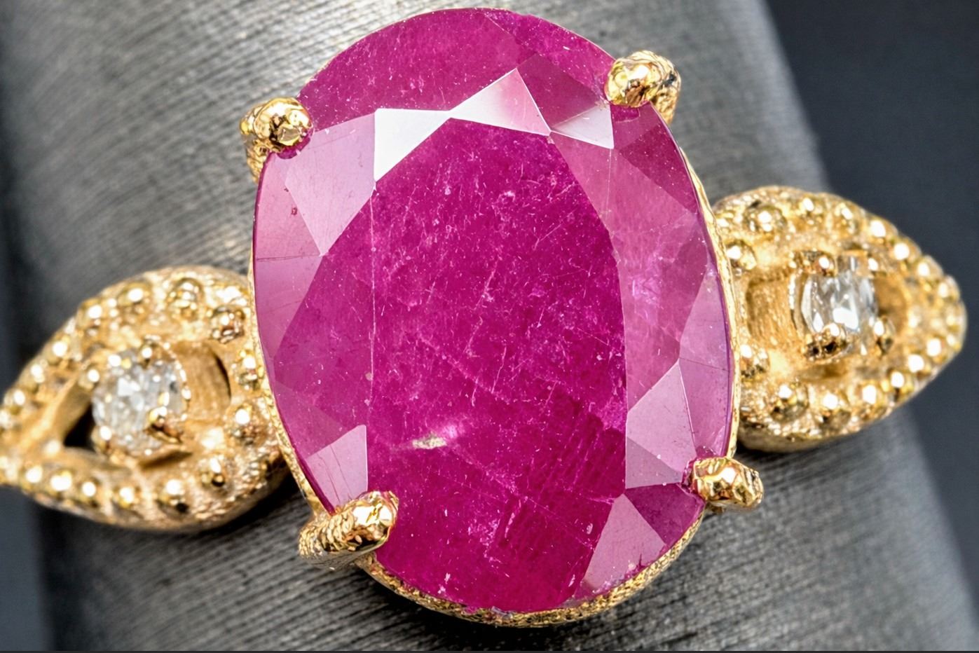 10K(2.4G), RUBY (3.8CT), DIAMOND (0.03CT)RING, SIZE 7.5, SUGGESTED RETAIL VALUE $4500