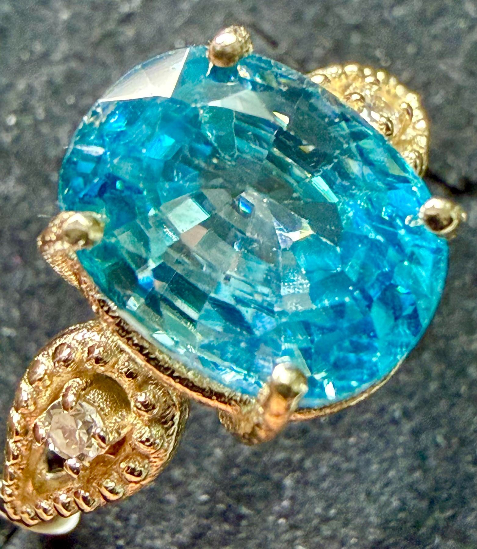 10K (2.6G) BLUE ZIRCON (4.3CT) DIAMOND (0.03CT) RING (SIZE 7.5) SUGGESTED RETAIL VALUE $3600