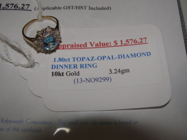 10K GOLD 1.80CT TOPAZ-OPAL-DIAMOND DINNER RING APPRAISED VALUE $1576.27