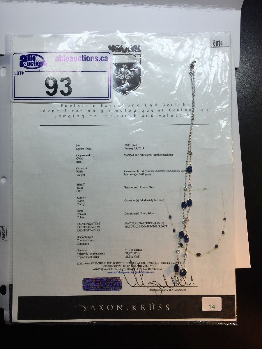 10K GOLD 8.10 CT SAPPHIRE AND MOONSTONE NECKLACE, APPRAISED VALUE: $5,016