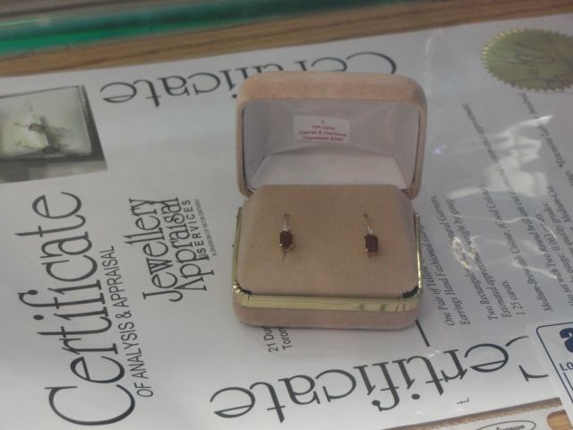 10K GOLD GARNET AND DIAMOND EARRINGS (0.06CARAT) APPRAISED AT $395