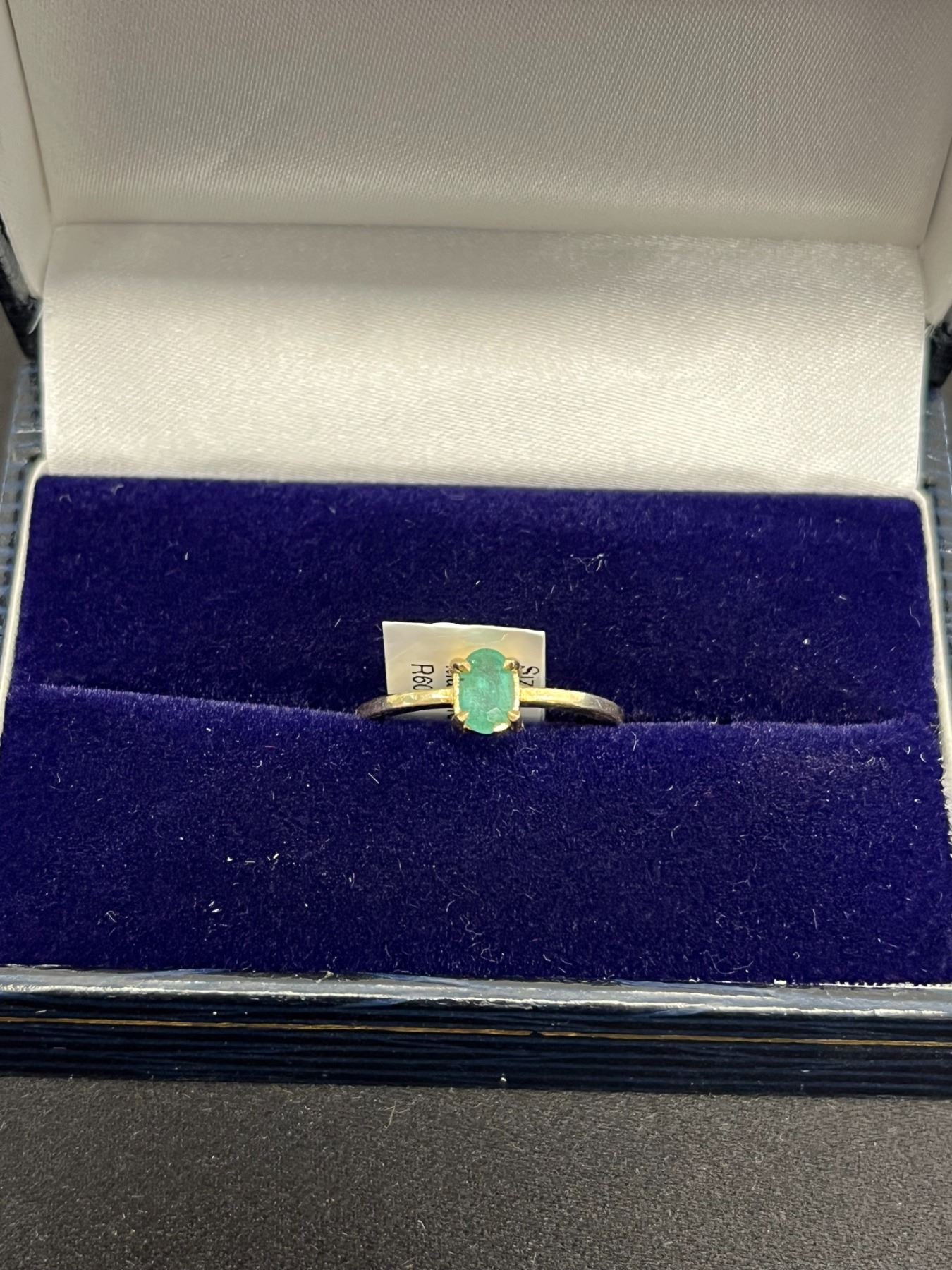 10K GOLD NATURAL EMERALD RING SIZE 7