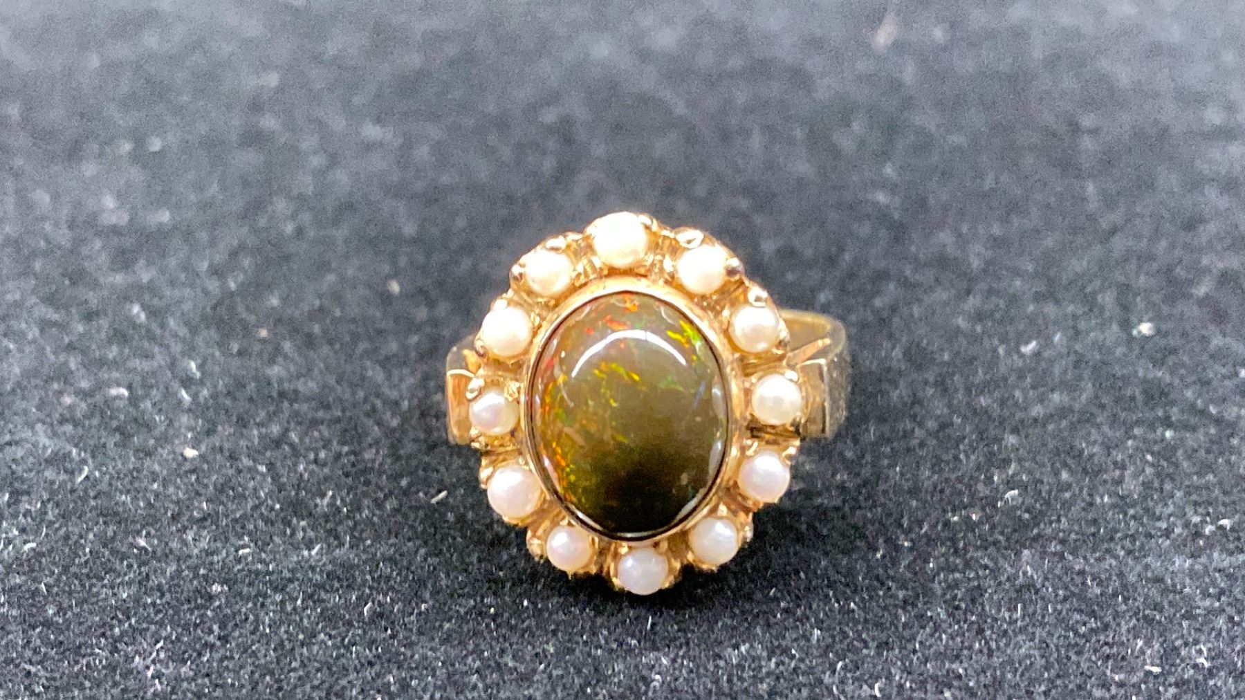 10K LADIES RING SET WITH OPAL AND PEARLS (4.8G)