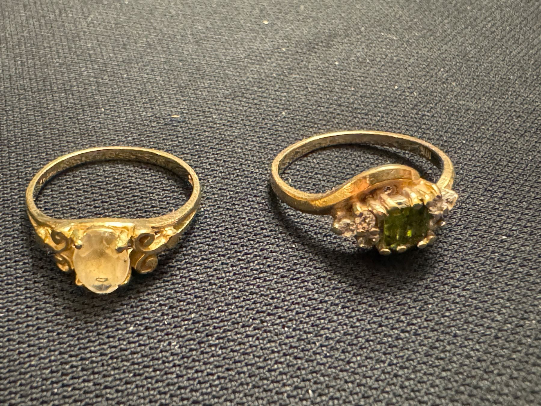 10K LADIES RING WIT GREEN STONE AND CUBIC, 10K RING WITH WHITE STONE TTL 3.7G