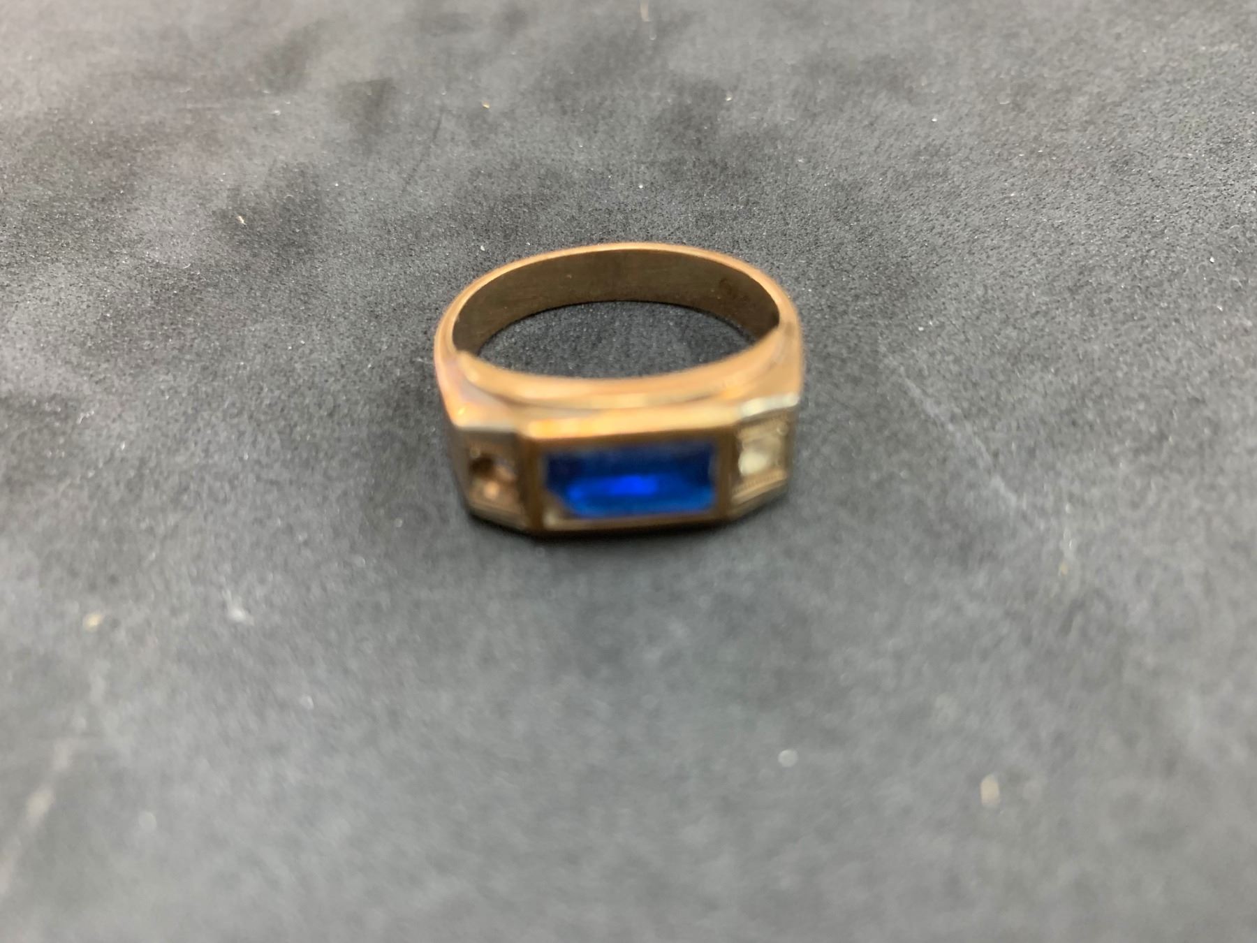 10K LADIES RING WITH BLUE (CHIPPED) & WHITE STONES