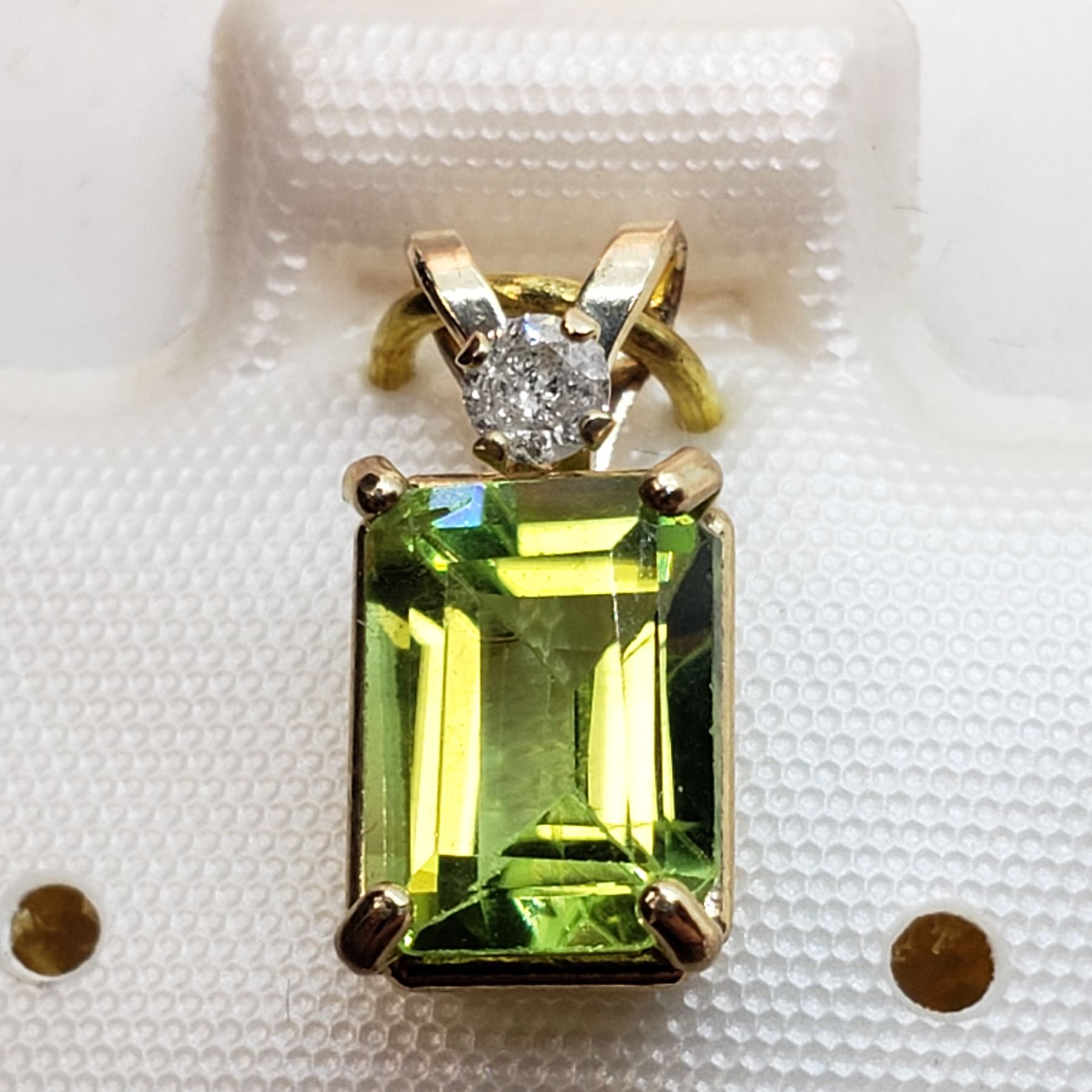 10K PERIDOT (BAGUETTE CUT)(1.08CT) DIAMOND(0.04CT) 7X5MM PENDANT