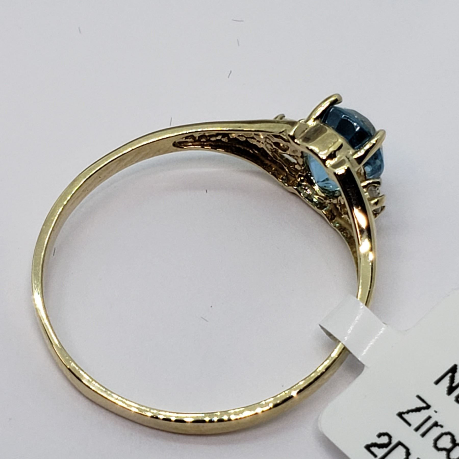10K RARE BLUE ZIRCON(1CT) 2 DIAMOND(0.02CT) RING