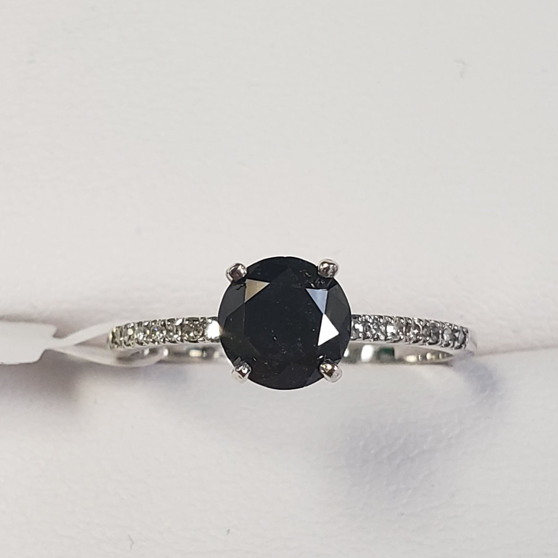 10K WHITE GOLD BLACK DIAMOND(1CT) DIAMOND(0.08CT) RING (~SIZE 6.5) (~WEIGHT 1.33G)