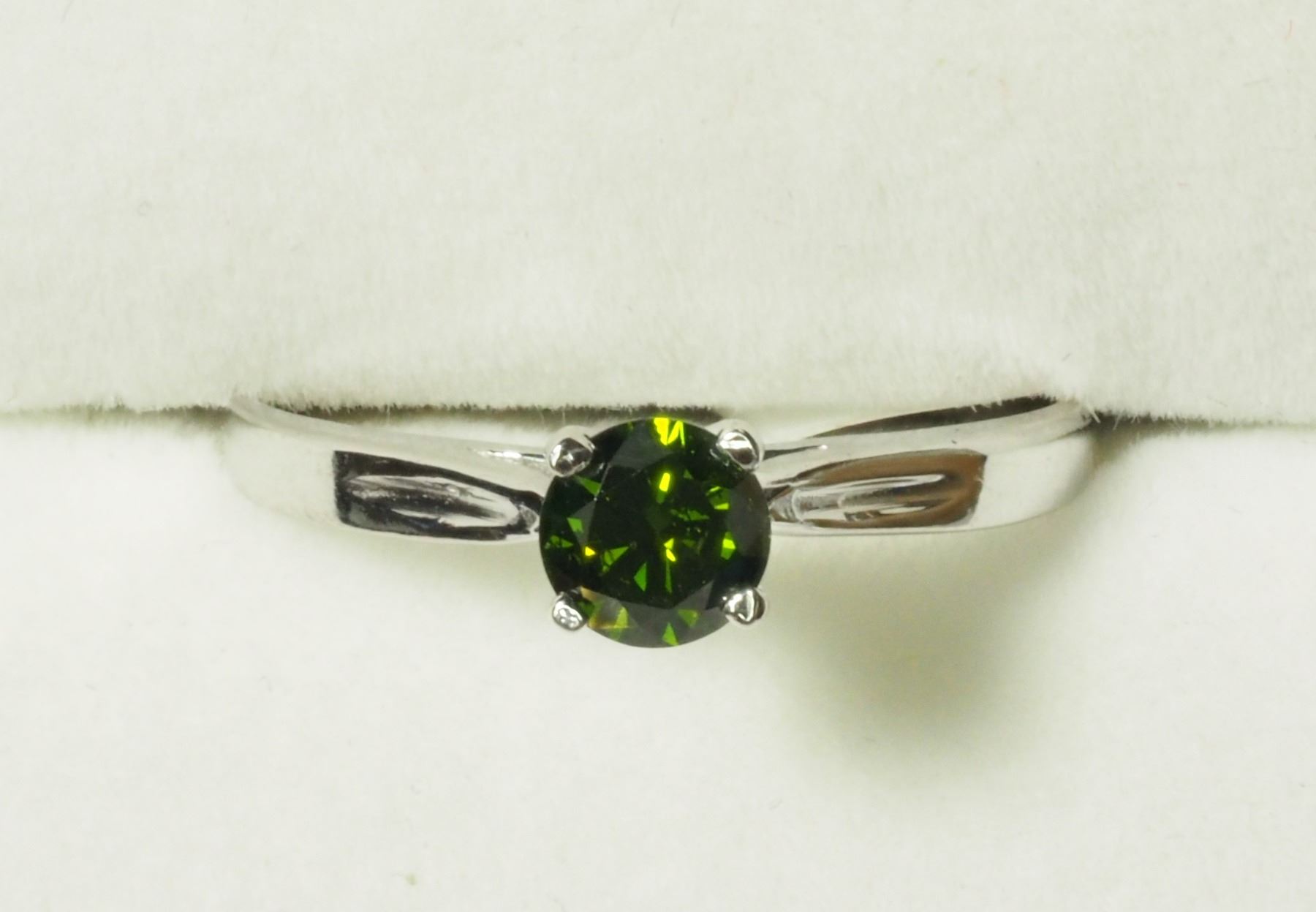 10K WHITE GOLD GREEN DIAMOND(0.36CT) RING, MADE IN CANADA. APPRAISED VALUE $1605