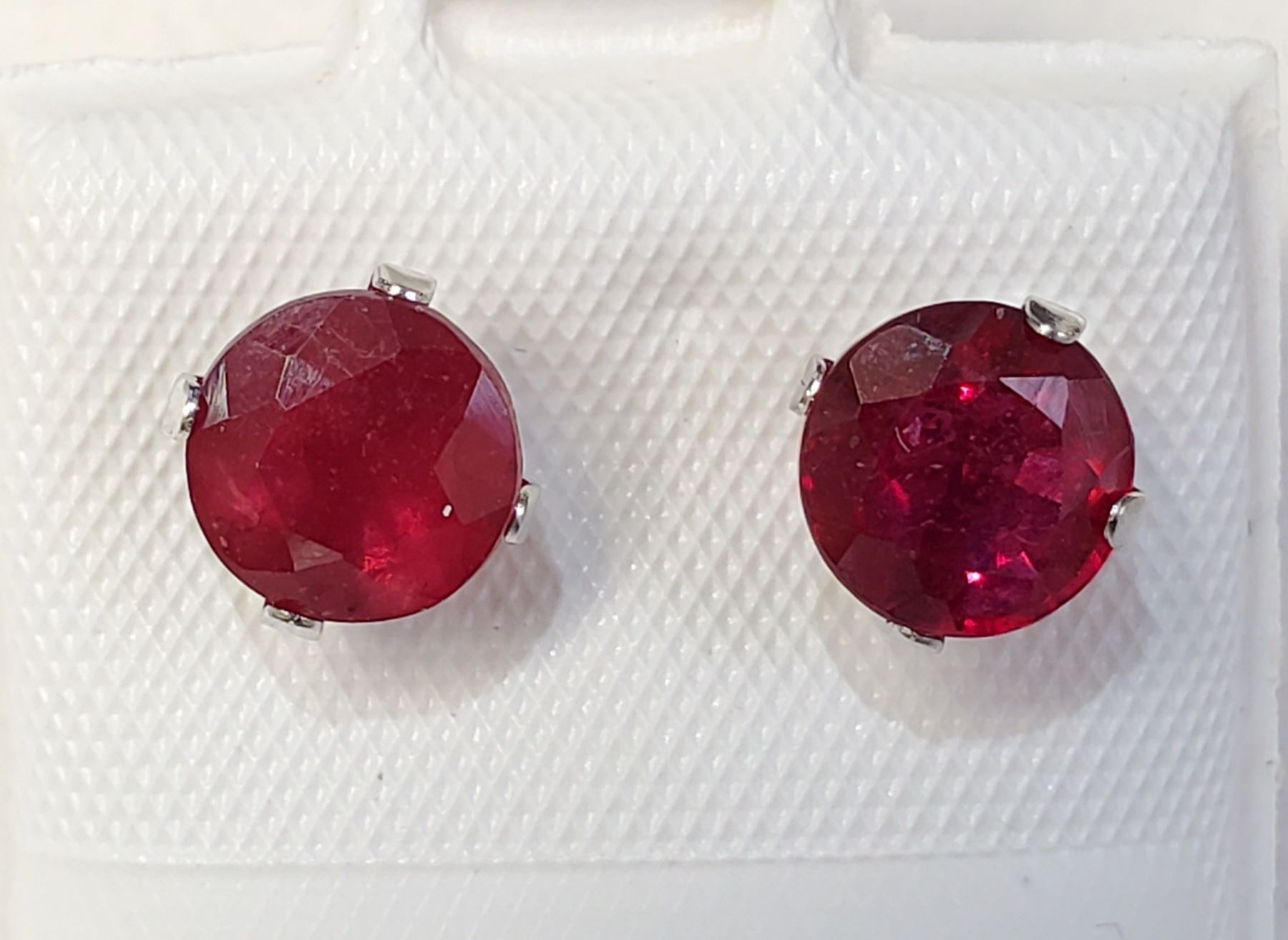 10K WHITE GOLD RUBY(2.5CT) ROUND 6X6MM EARRINGS