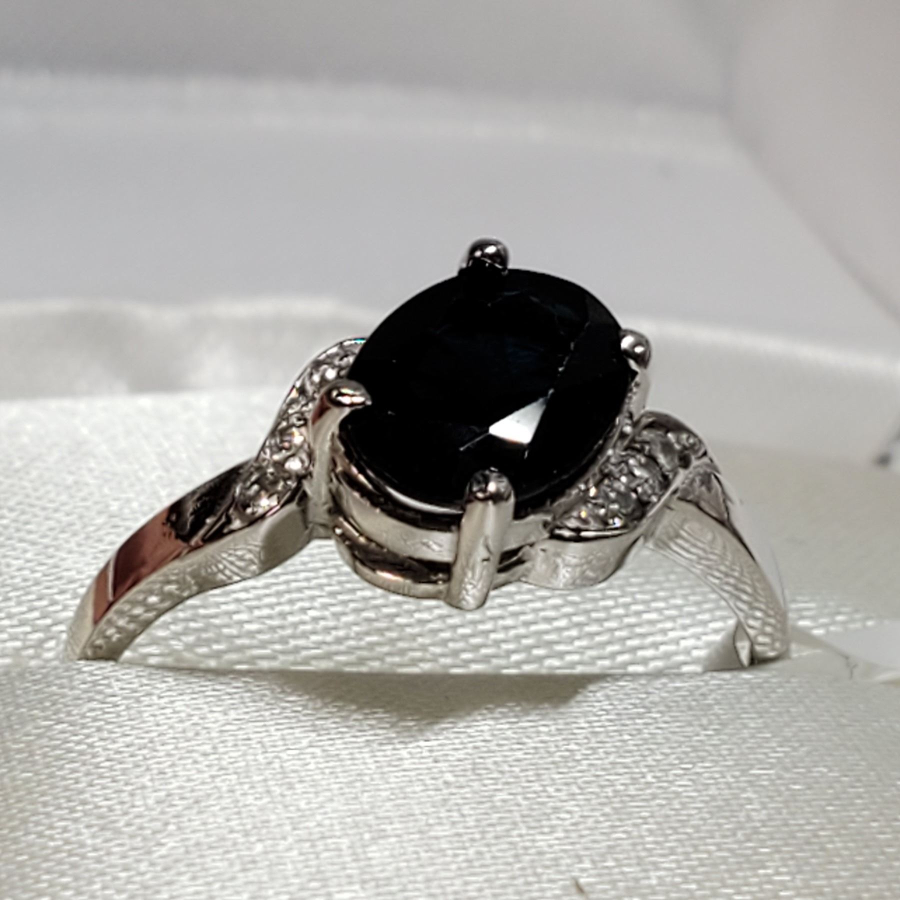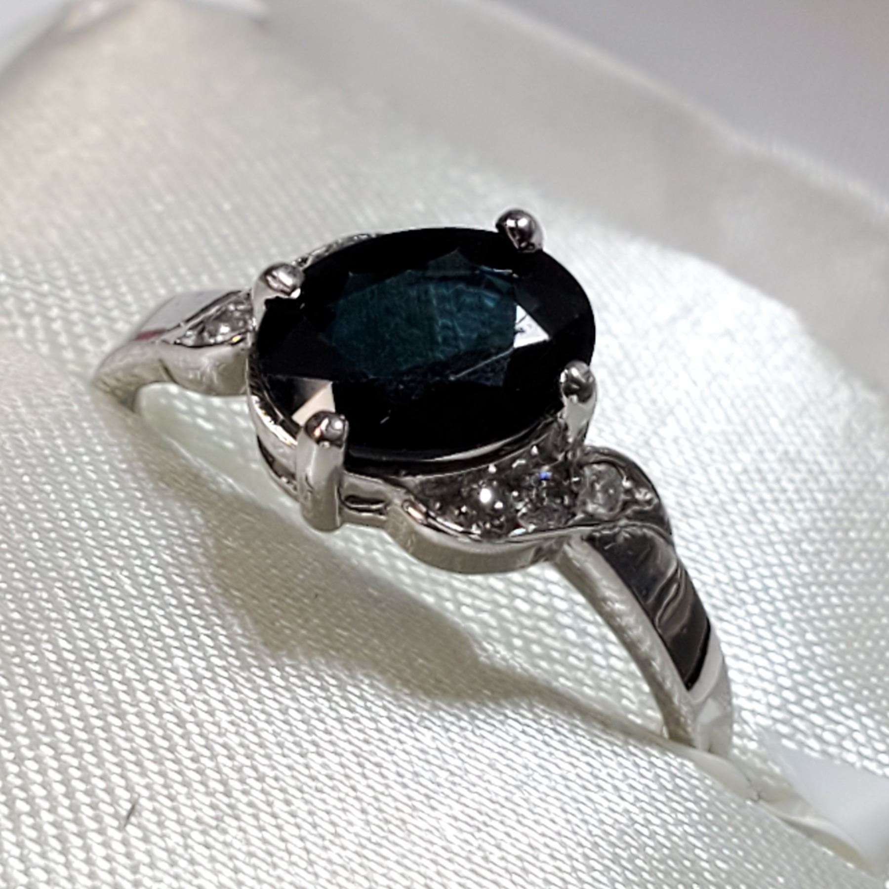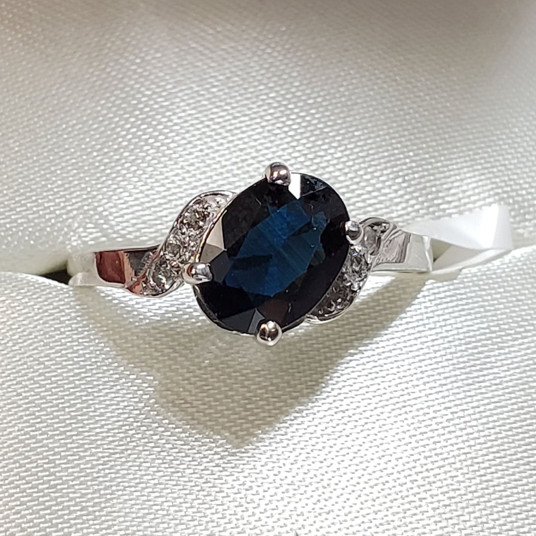 10K WHITE GOLD SAPPHIRE(1.05CT) DIAMOND (0.06CT) RING