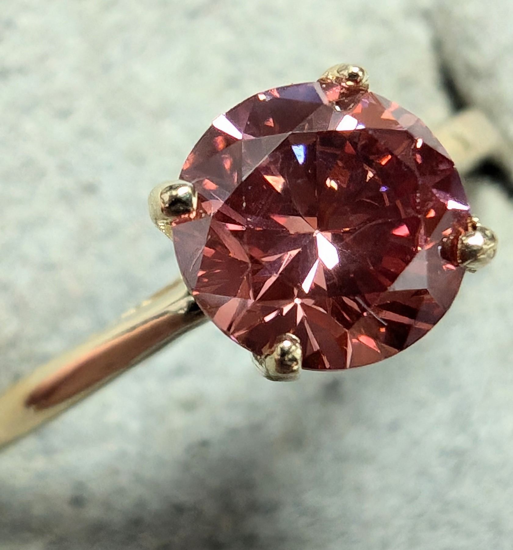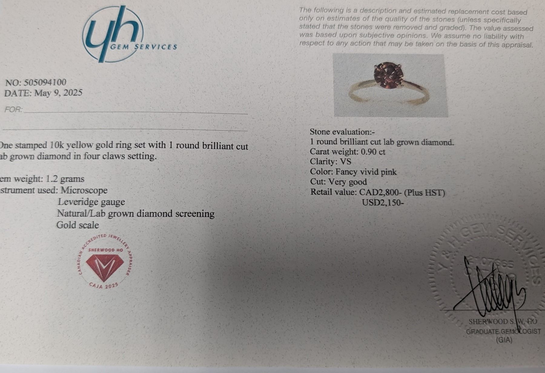 10K YELLOW GOLD 1.2G 0.9CT LAB PINK DIAMOND RING SUGGESTED RETAIL $2800