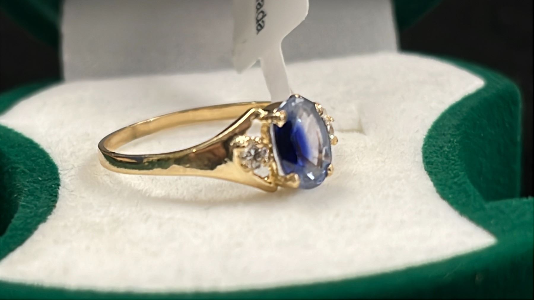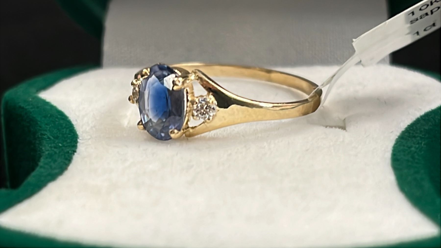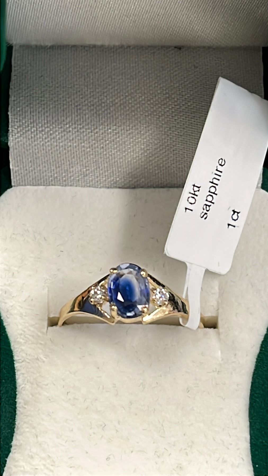 10K YELLOW GOLD 1.3G NATURAL SAPPHIRE 1CT & LAB DIAMOND 0.05CT RING (~SIZE 6.5)