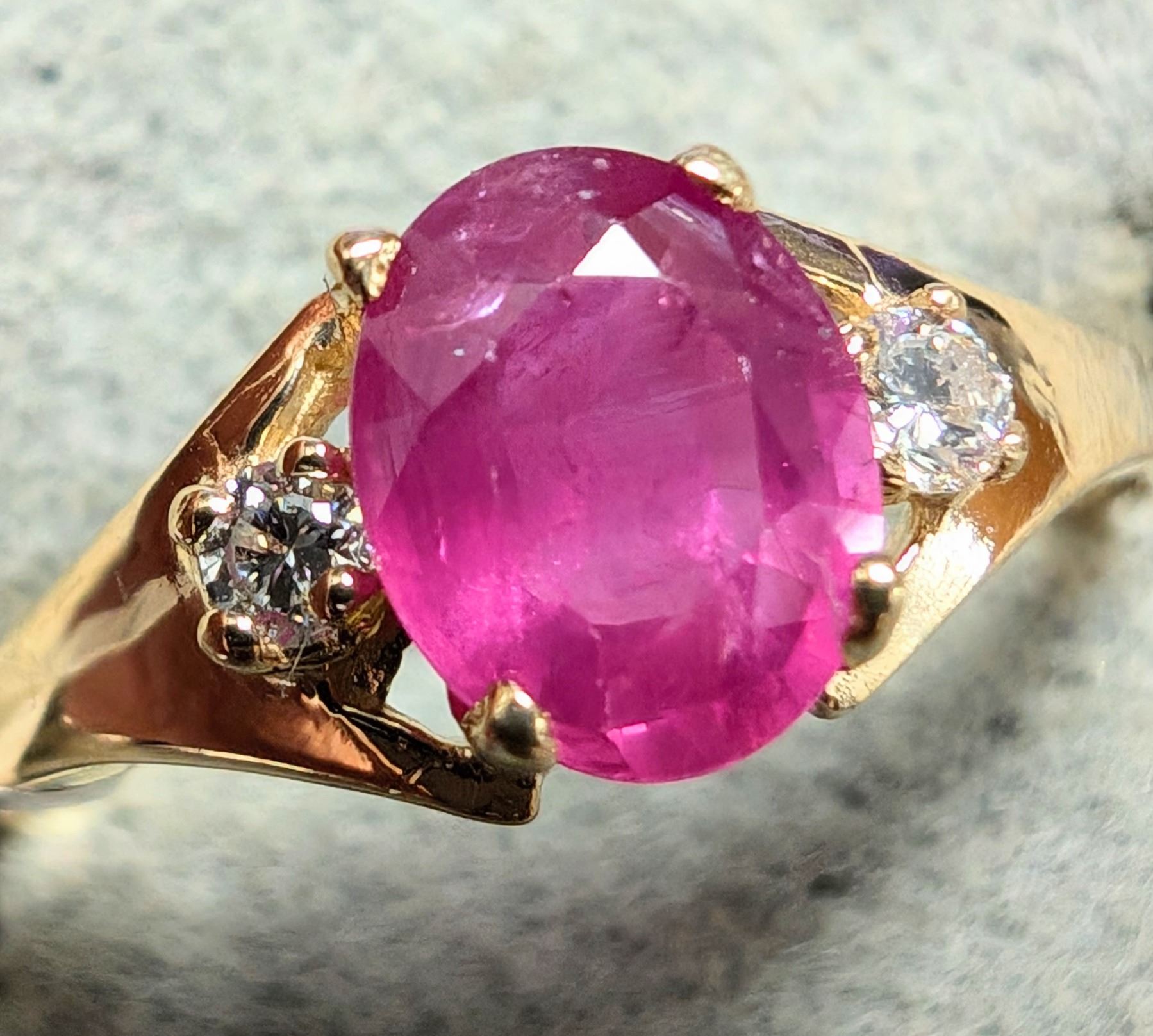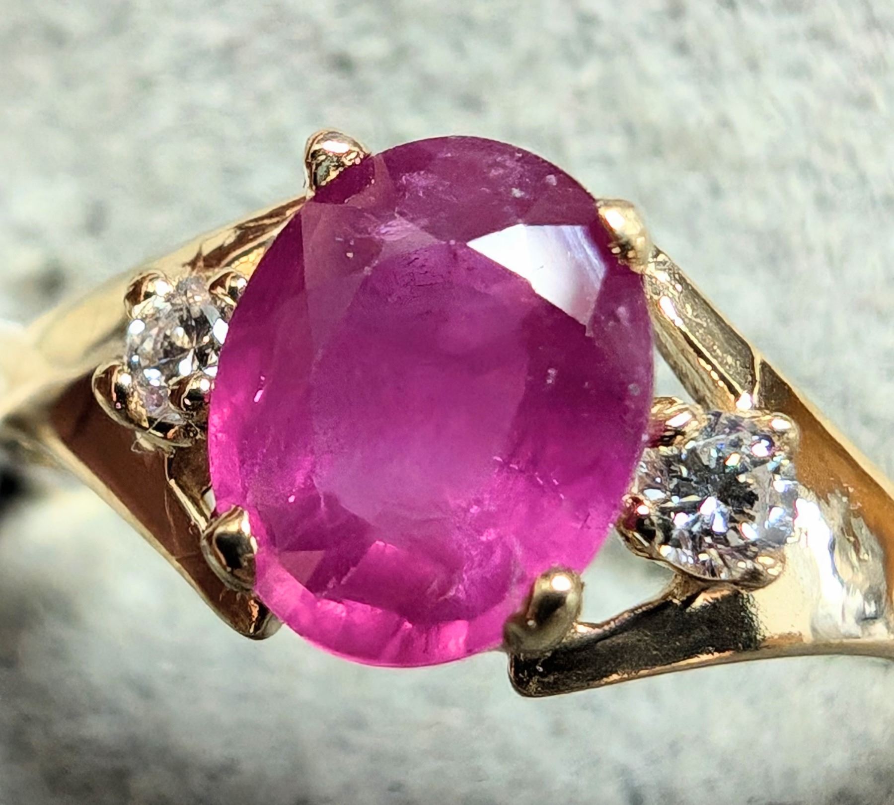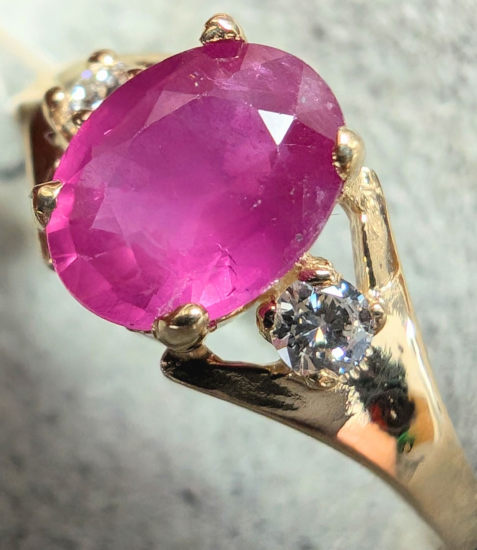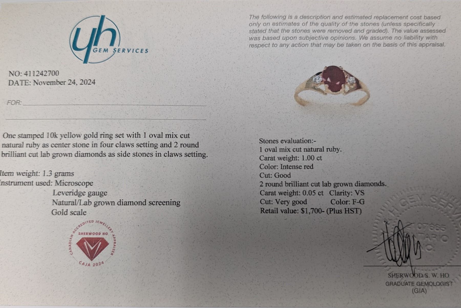10K YELLOW GOLD 1.3G RUBY RING & LAB DIAMOND 0.05CT APPRAISED INSURANCE VALUE $1700