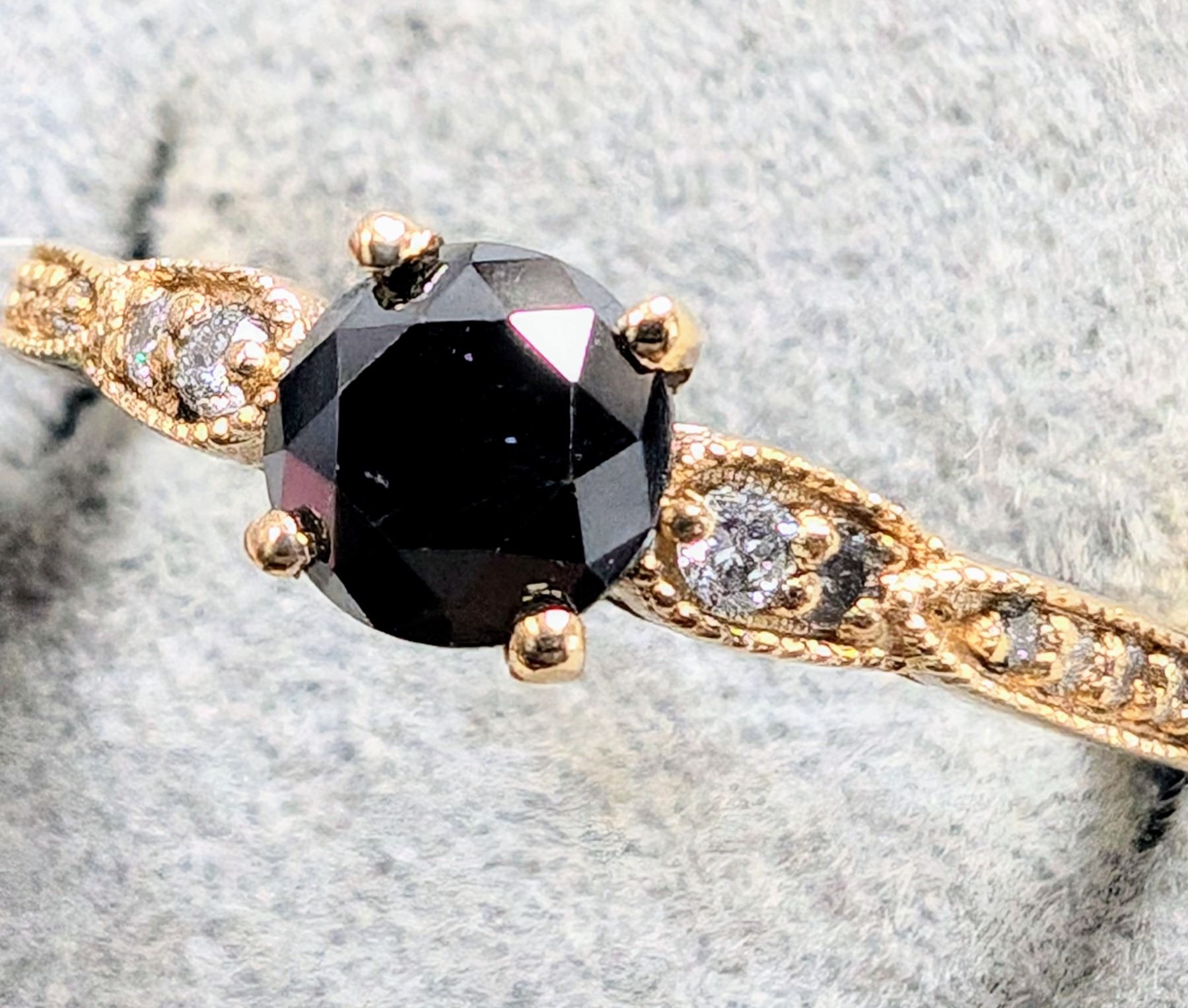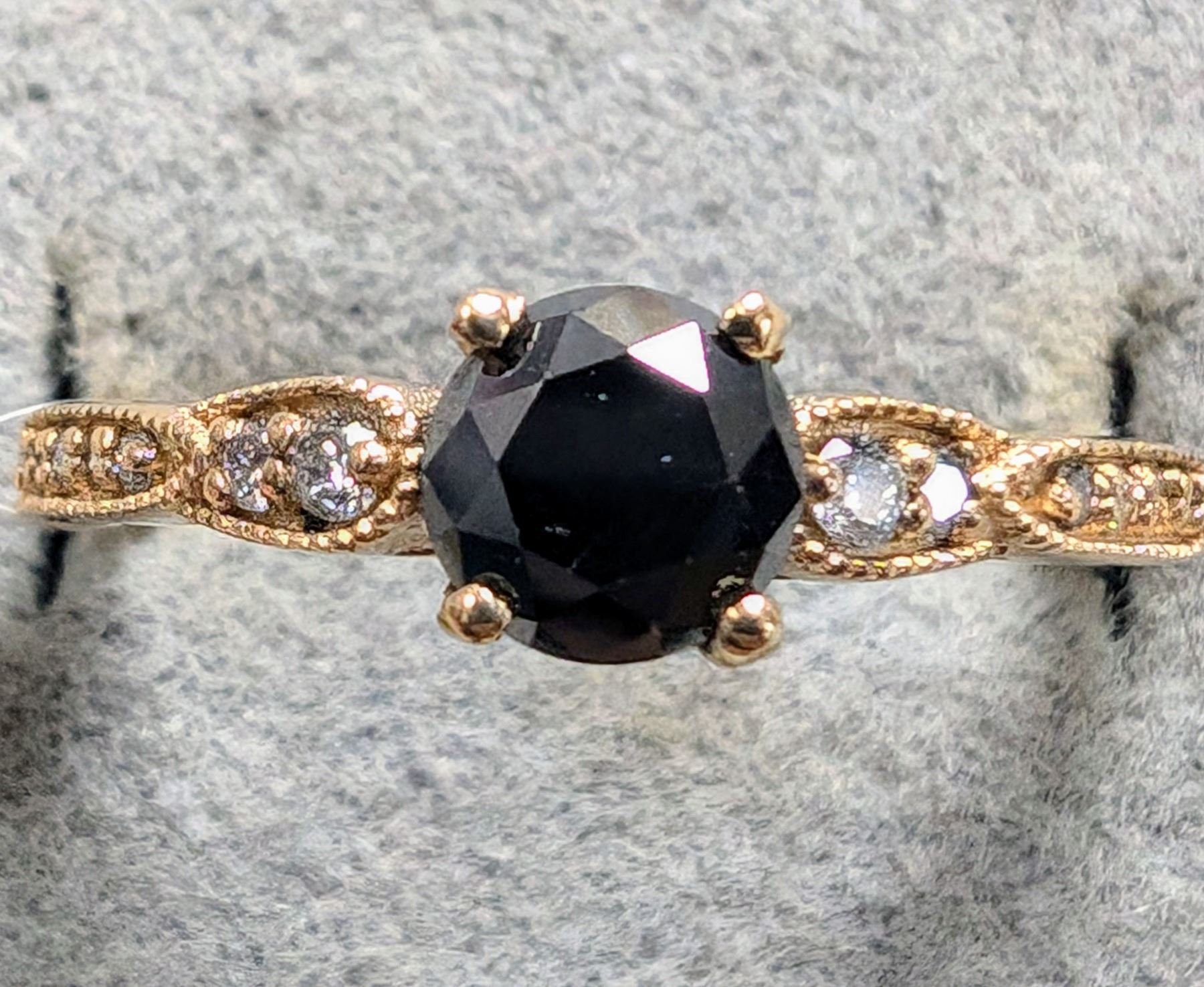 10K YELLOW GOLD 1.63G BLACK DIA 0.62CT + LAB DIAMOND 0.1CT RING (~SIZE 6.5)