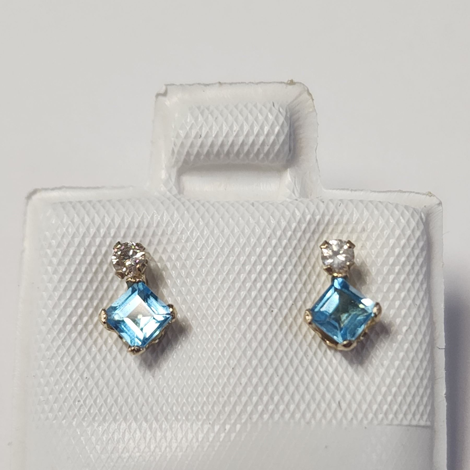 10K YELLOW GOLD BLUE TOPAZ(0.44CT) DIAMOND(0.06CT) EARRINGS