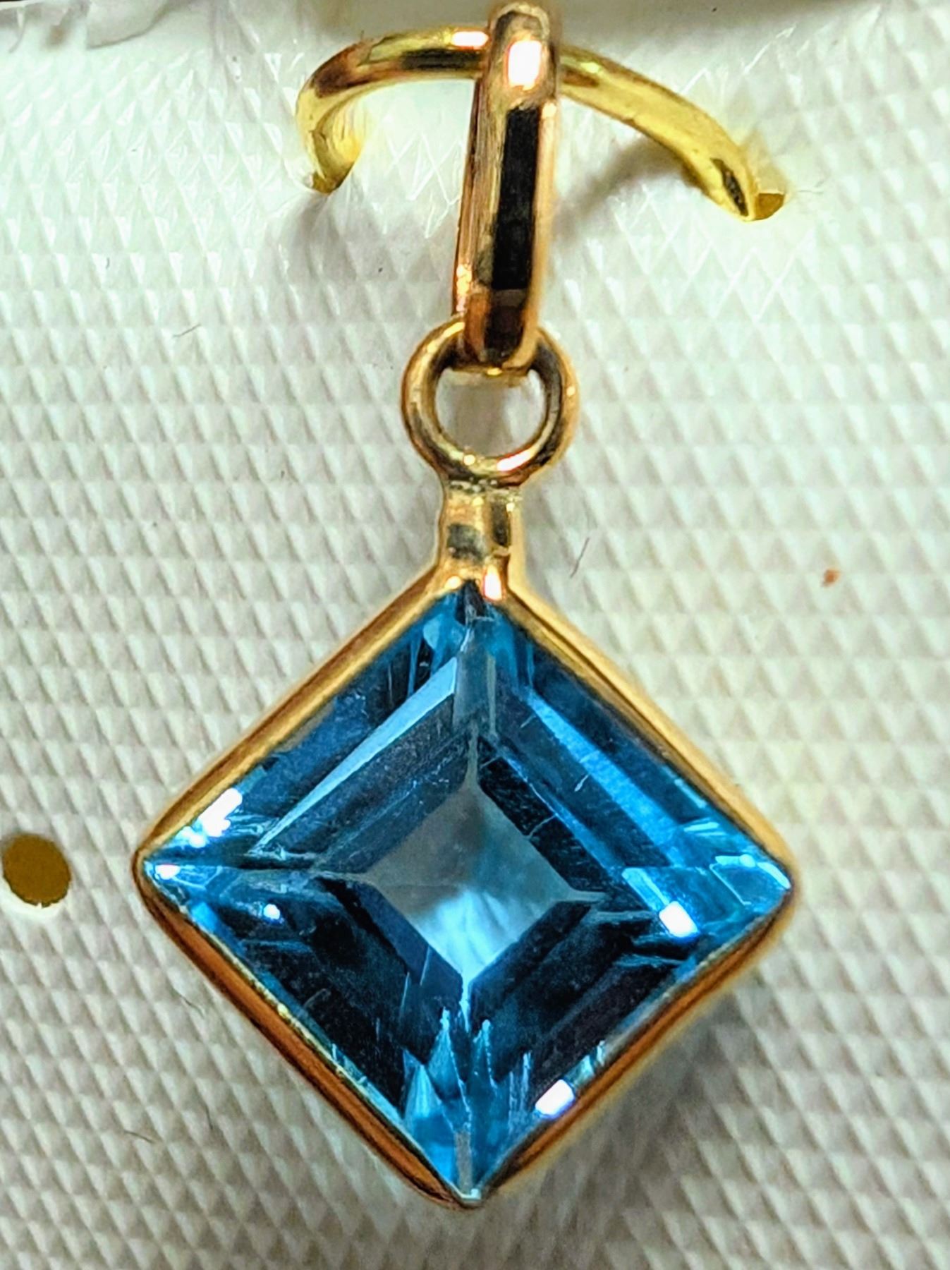 10K YELLOW GOLD BLUE TOPAZ 1.4CT PENDANT