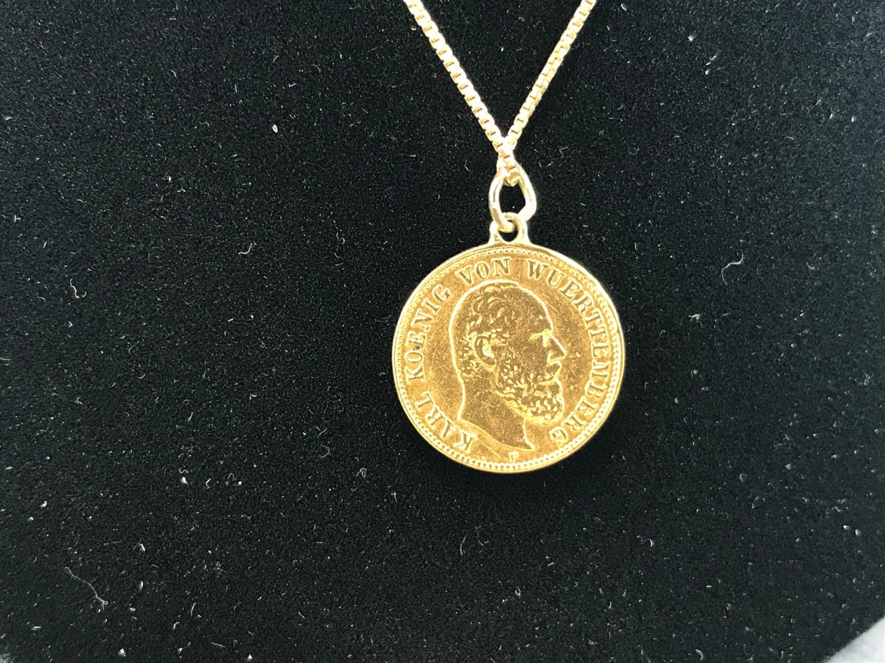 10K YELLOW GOLD CHAIN 18" WITH GOLD COIN PENDANT - RP $350.00