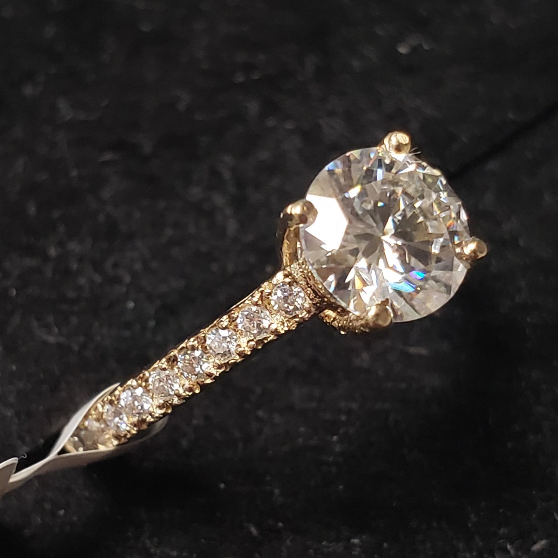 10K YELLOW GOLD MOISSANITE(1.2CT) MOISSANITE(0.2CT) RING (~SIZE 5) (~WEIGHT 2.87G)