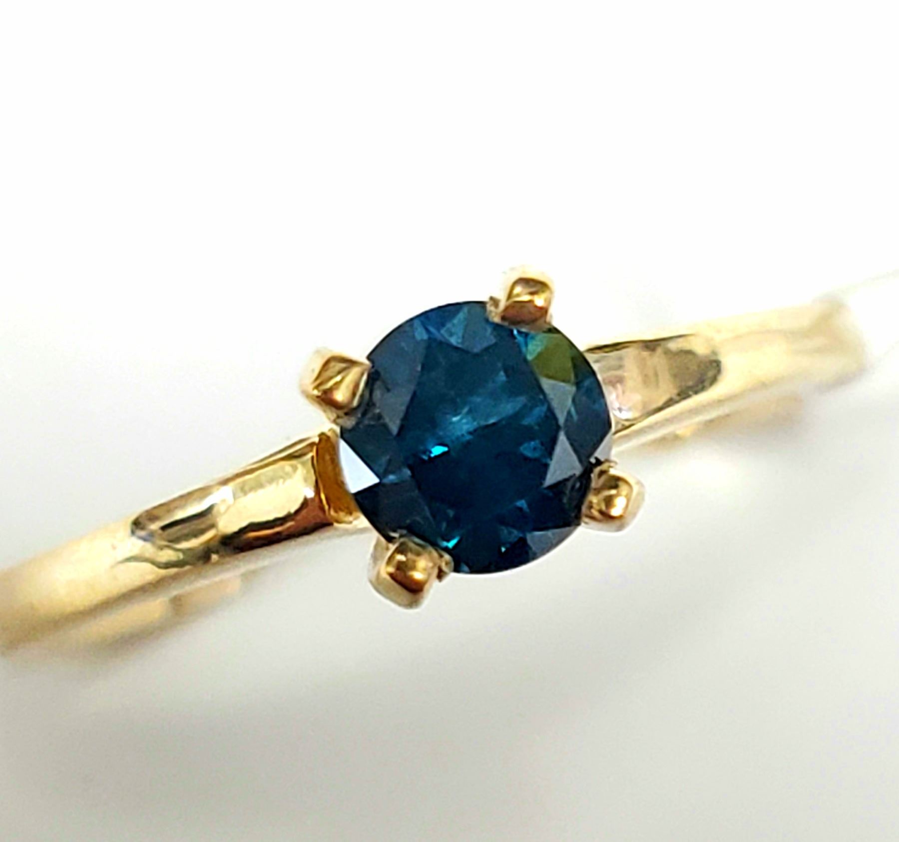 10K YELLOW GOLD NATURAL BLUE DIAMOND TREATED(0.41CT) RING (~SIZE 6) (~WEIGHT 1.73G)