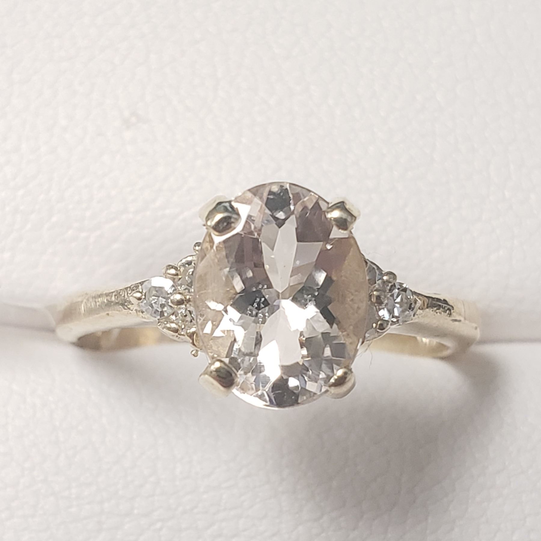 10K YELLOW GOLD NATURAL MORGANITE (1.65CT) DIAMOND(0.03CT) RING (~SIZE 7)