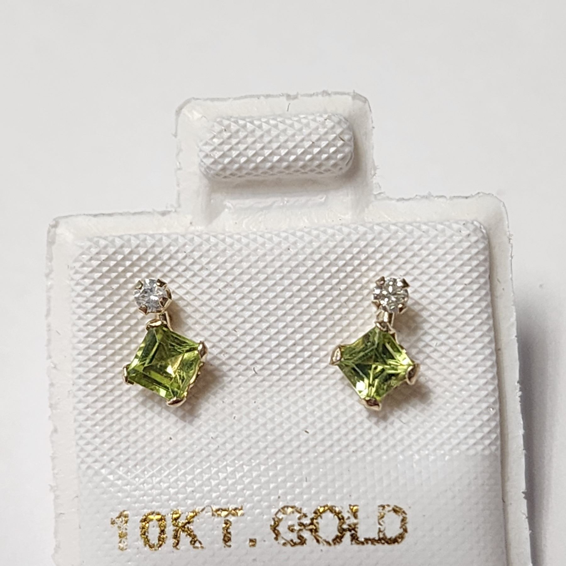 10K YELLOW GOLD PERIDOT(0.4CT) DIAMOND(0.06CT) EARRINGS