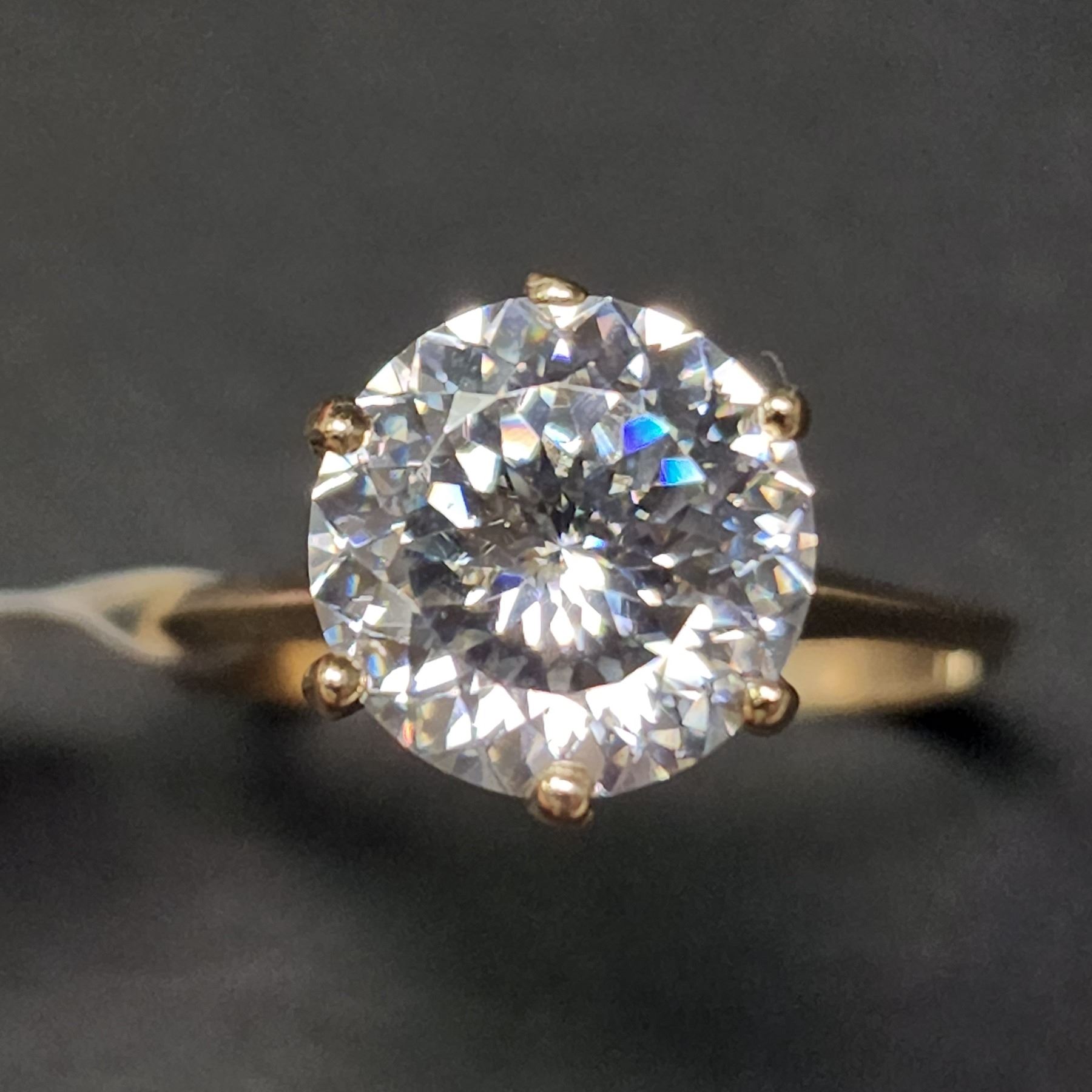 10K YELLOW GOLD WHITE MOISSANITE (2.42CT) RING (SIZE 6.25) (WEIGHT 2.29G)