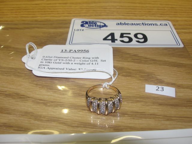 10KT GOLD 0.63CT DIAMOND CLUSTER RING WITH CLARITY OF VS-2/SI-2 - COLOR G/H APPRAISED VALUE $2500.00