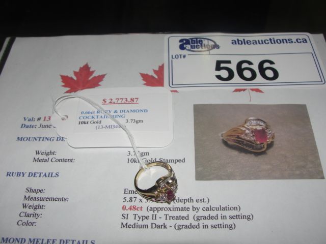 10KT GOLD 0.66CARAT RUBY AND DIAMOND COCKTAIL RING APPRAISED VALUE $2773.87