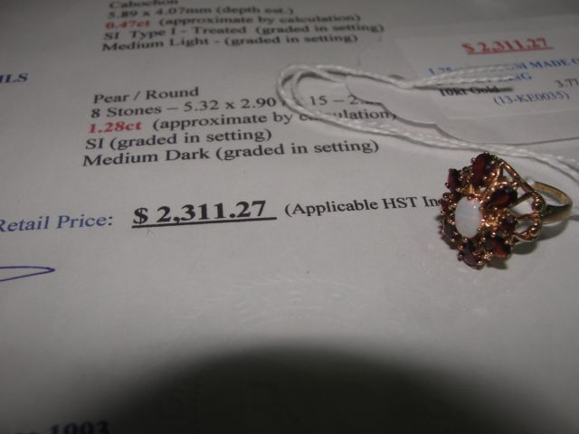 10KT GOLD 1.75CARAT CUSTOM MADE OPAL AND GARNET RING APPRAISED VALUE $2311.27