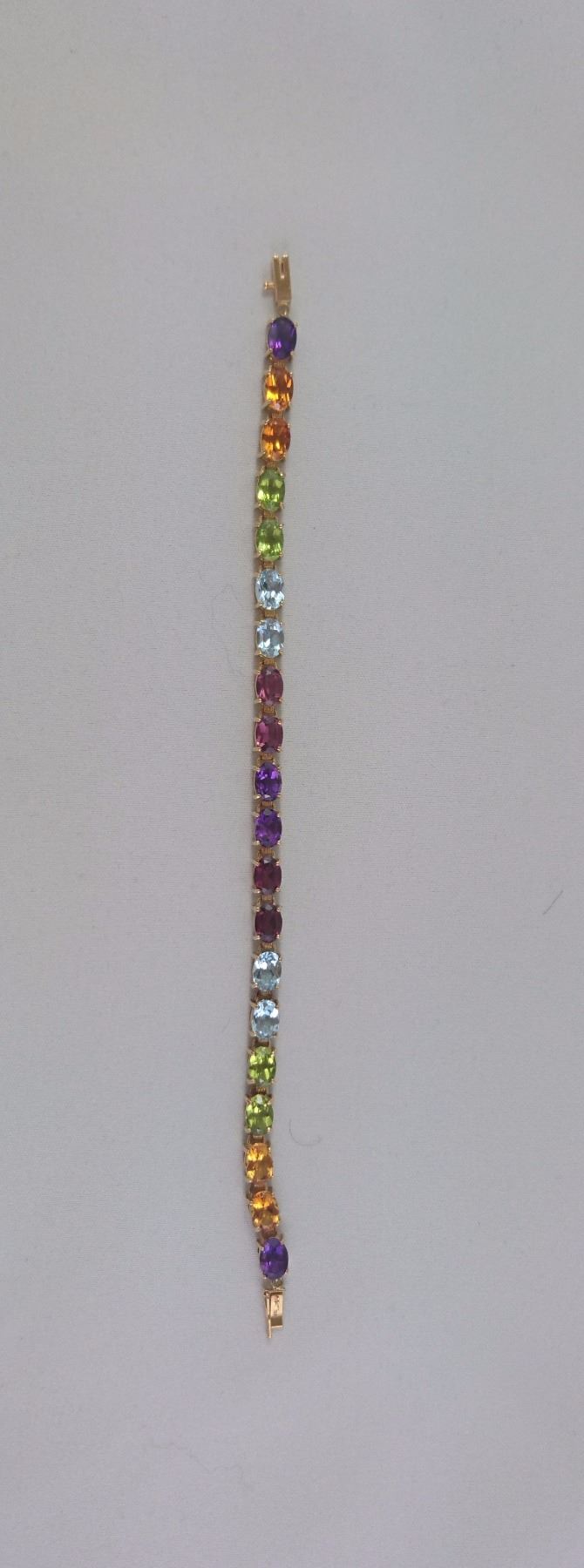 10KT YELLOW GOLD BRACELET 7" SET WITH 20 OVAL CUT AMETHYST CITRINE TOPAZ PENNDOT GARNETS TW 1.3 GRAM REPLACEMENT VALUE $695