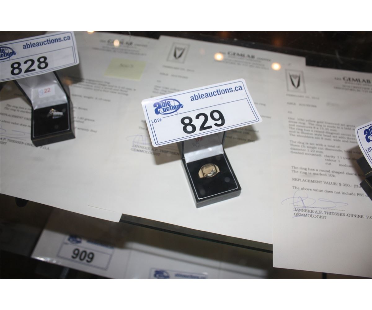 10KT YELLOW GOLD DIAMOND ACCENTED GENTS SIGNET STYLE DRESS RING WITH ONE DIAMOND, APPROX 0.02CARAT REPLACEMENT VALUE $475