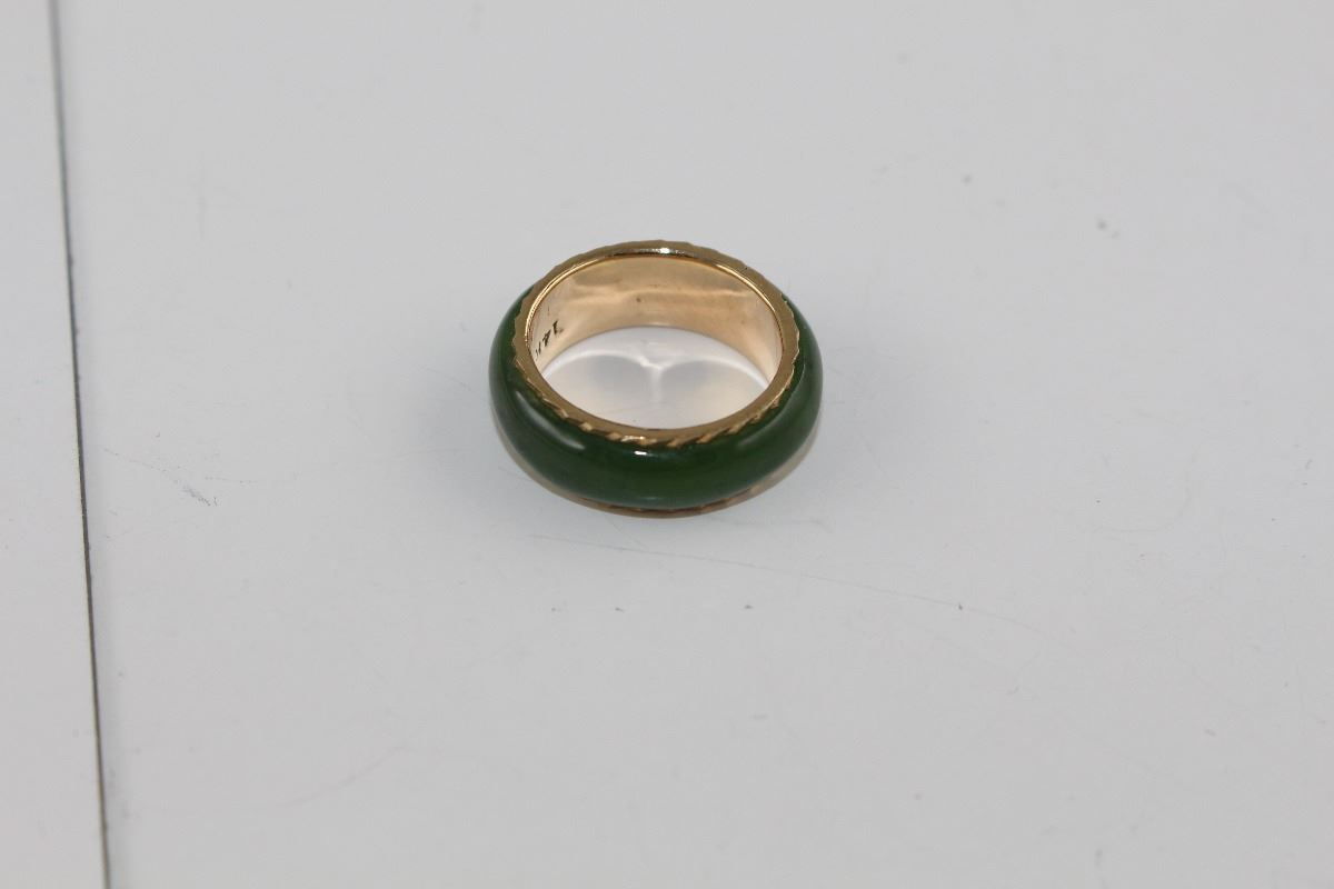 10KT YELLOW GOLD LADIES RING (BAND) SET WITH NEPHRITE JADE INSET